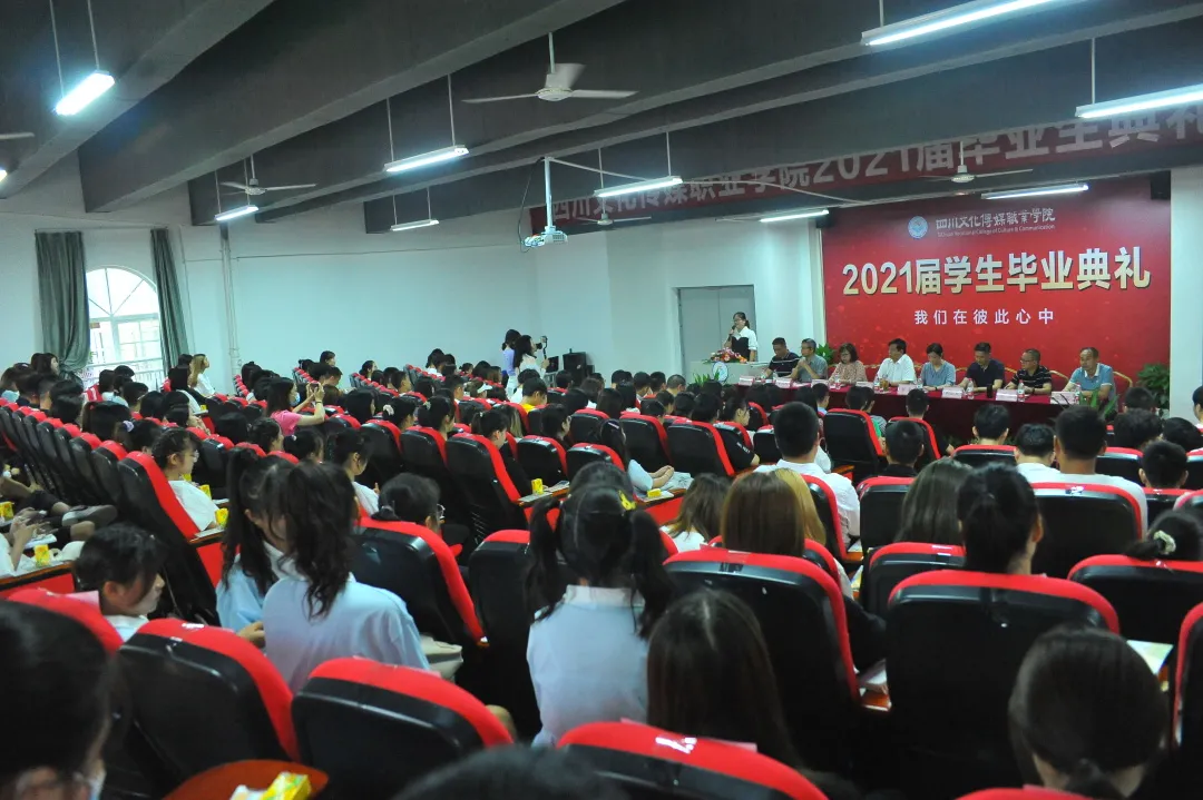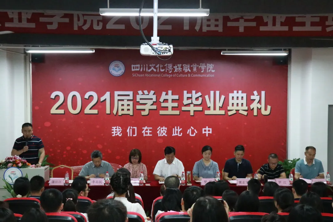 6月24日10:00,四川文化传媒职业学院2021届毕业典礼在绵竹校区报告厅举行。学院院长杨宁、执行院长罗琴、副院长张倩、副院长黄正文、副院长李忠民、副院长罗江、学前教育学院院长郑国庆与2021届毕业生们欢聚一堂,为同学们的大学生活画上圆满的句号!典礼由学生处处长蒲江江主持。