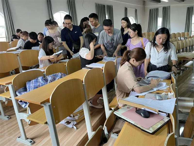考试结束后,监考老师统一前往考务室清点核对考试试卷。