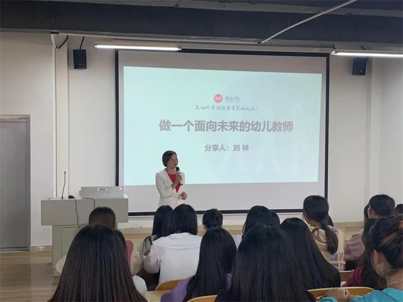 讲座中,刘林老师始终秉持着“心中有孩子,教育有情怀,人生有使命”的幼儿教育理念,和同学们分享并讨论如何做好一名幼儿教师。她认为,教育是场马拉松式的长跑,没有尽头,没有终点,将伴随我们一生,她希望同学们能够在开学第一课中有所收获,在未来三年的专业学习里成长、成才。