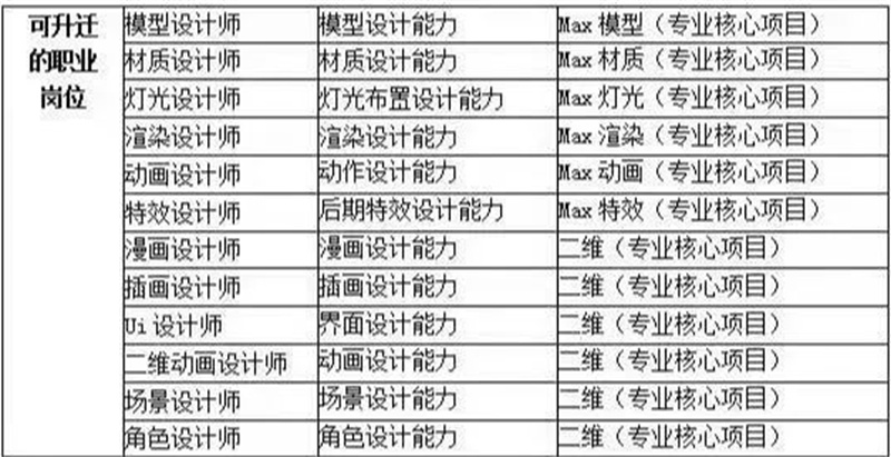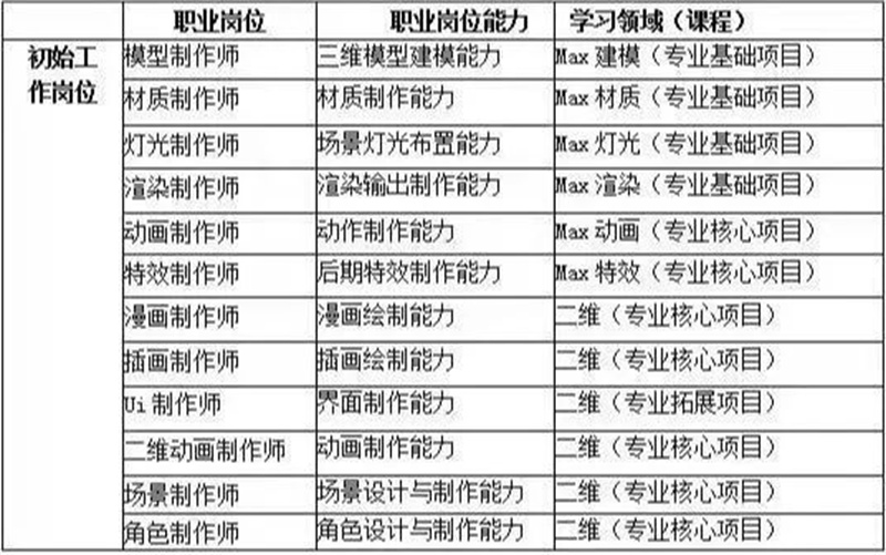 模型与材质、灯光与渲染、三维模型设定、三维材质、灯光与渲染、三维动画、三维动画特效、广告宣传片制作、动画短片、游戏制作、UI设计、手办制作、定格动画、摄影摄像等。