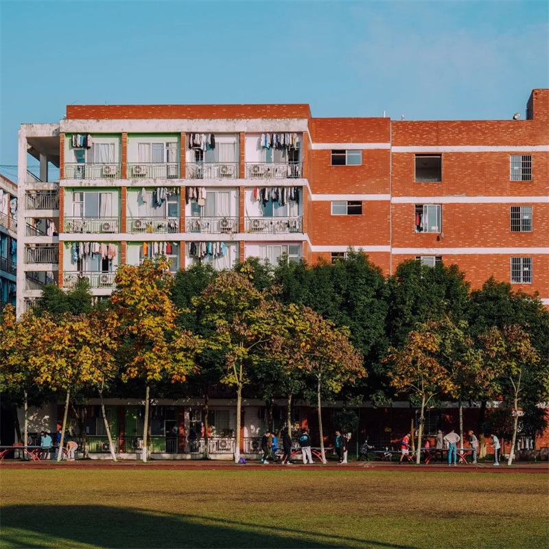 住:学院配备四、六、八人间公寓住宿,每间寝室均有独立的阳台、独立的卫生间、独立的书桌、独立的衣柜、液晶电视、空调、热水器等。每楼层配有自主洗衣机、洗鞋机。