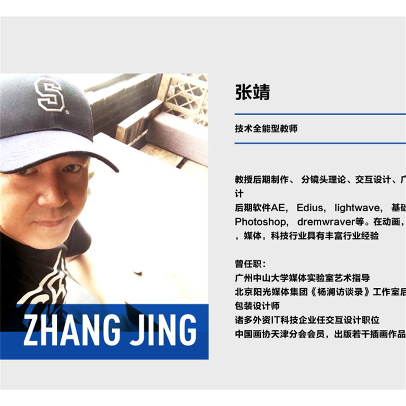 教授后期制作、分镜头理论、交互设计、广告设计、AE, Edius, lightwave,基础软件Photoshop, dremwraver等。在动画,广告媒体,科技行业具有丰富行业经验。