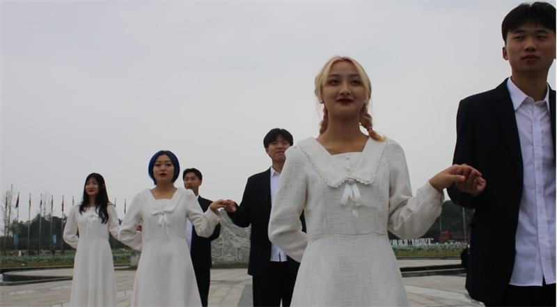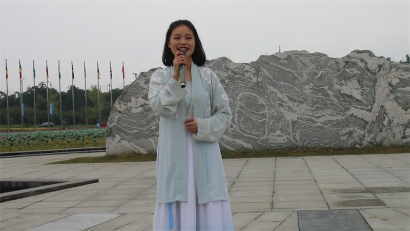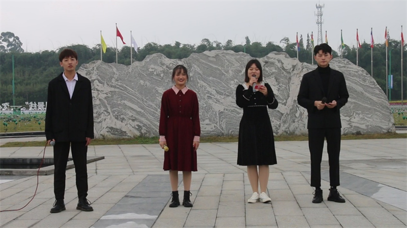 学生为眉山竹艺博览园开幕式表演才艺
