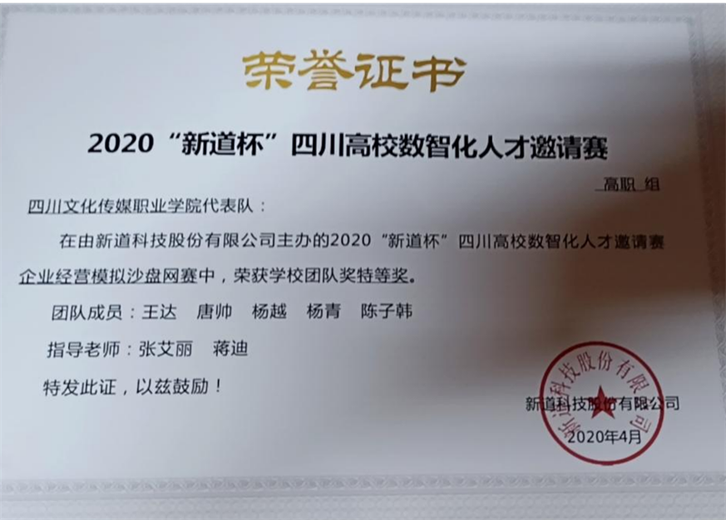 学生竞赛荣誉证书