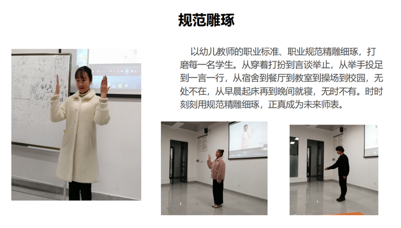 实训、见习、实习等实践教学环节的学时占比超过三分之二,以绝对的时间优势,保障学生的教师职业能力培养,“弥散式”教育见习贯穿三年培养全过程始终,铸就学前教育专业学生的幼教师魂。