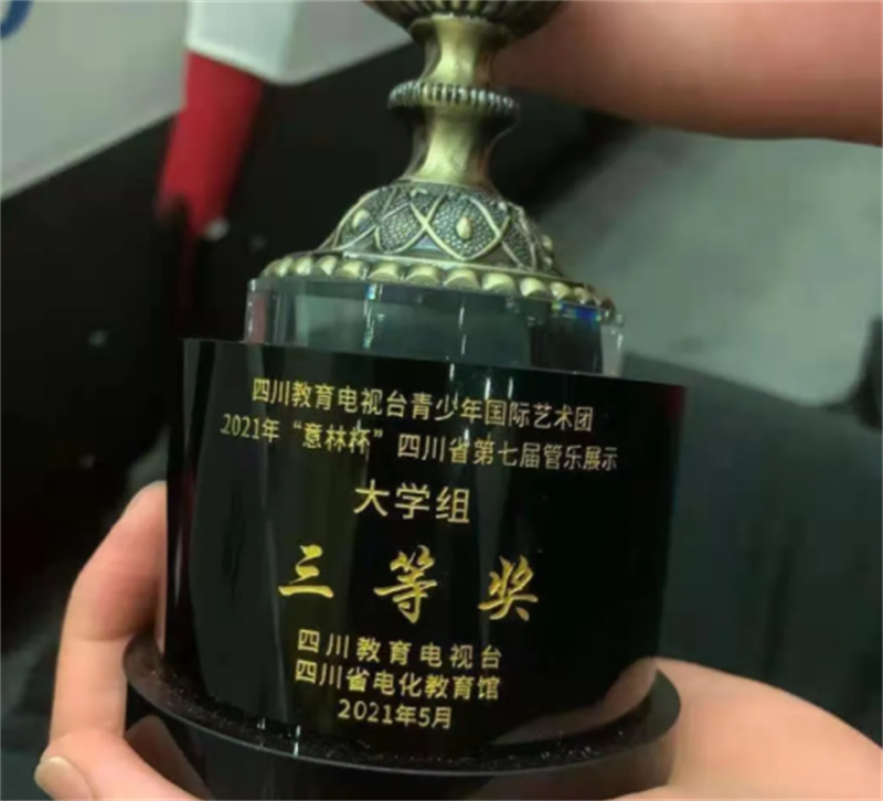 2021年“意林杯”四川省第七届管乐展演活动。学前教育学院管乐团演奏的作品《半个月亮爬上来》和《兵马俑》凭借出色发挥,获得了比赛的三等奖,为学院赢得了荣誉。