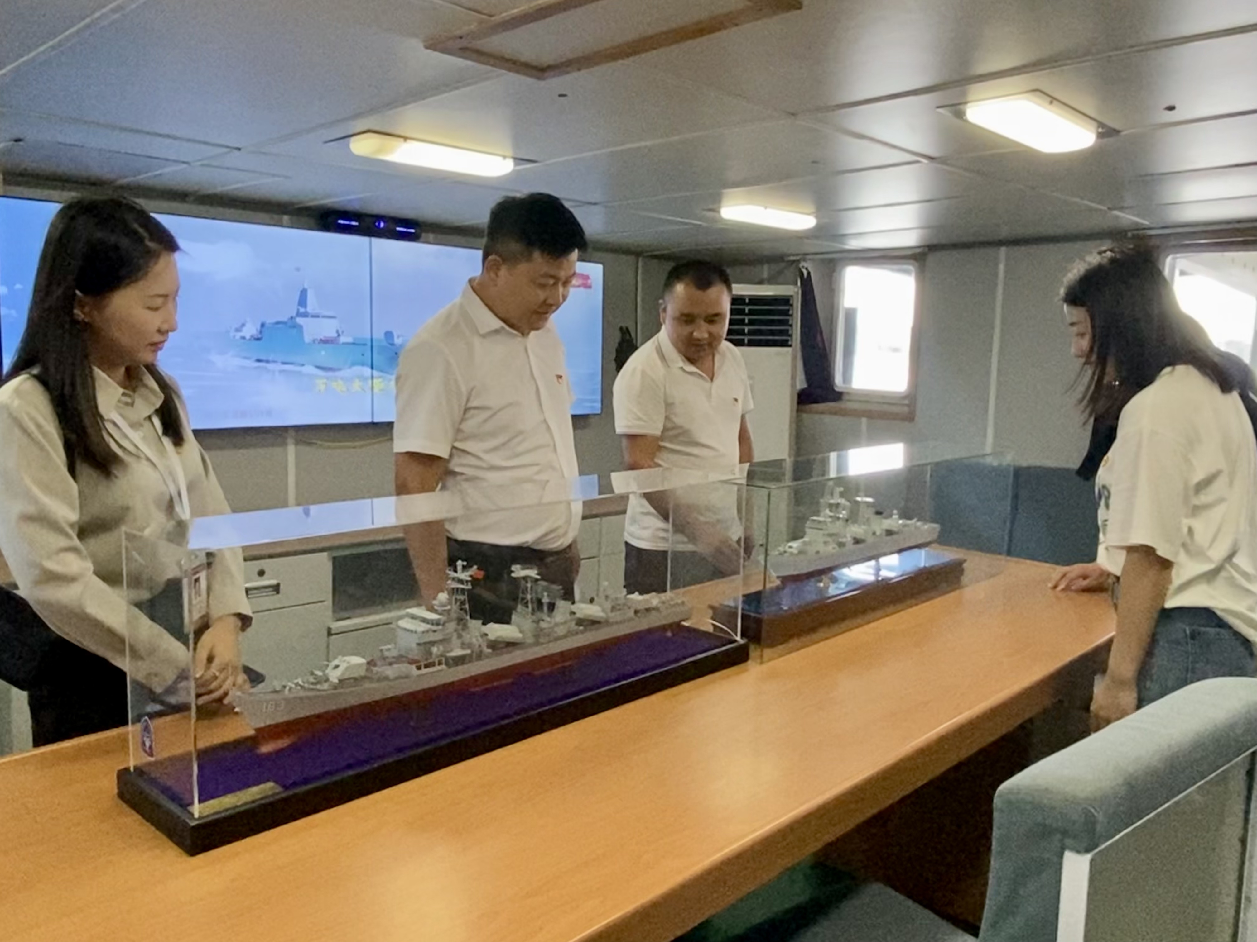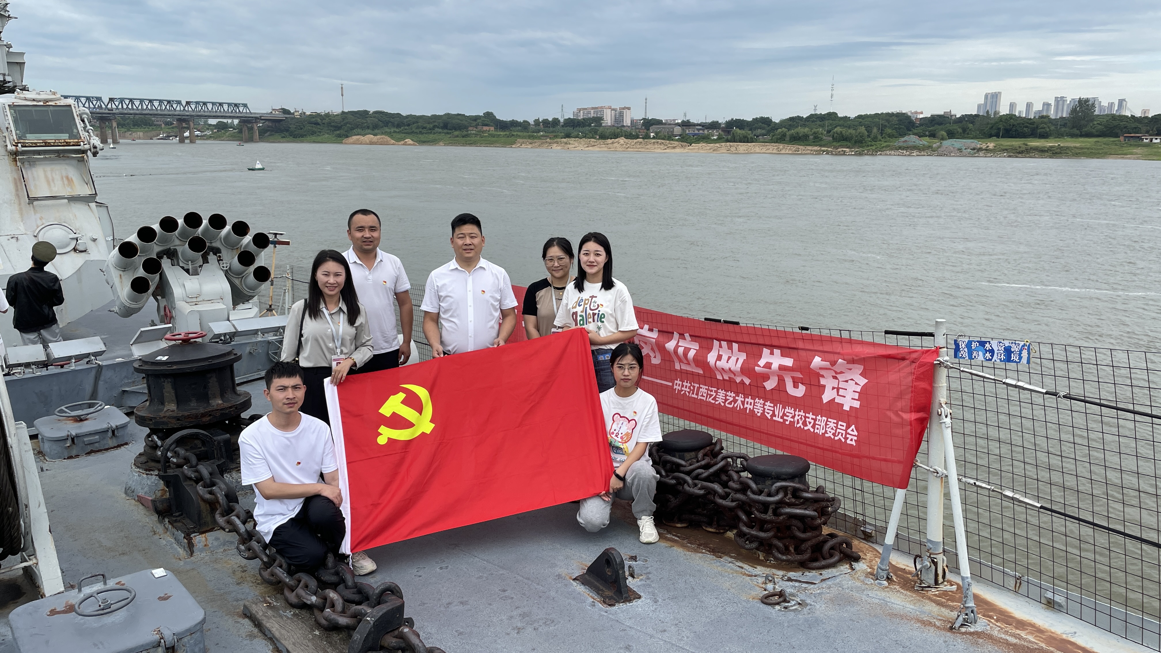 党员们走出党员活动室前往南昌舰开展以党史军史为主要内容的党性教育活动。活动中,大家登上南昌舰,参观作战室、水兵舱、陈列馆等区域,了解“南昌舰”的光荣历史,近距离感受“南昌舰”从“缘起白马庙”到“曾母暗沙第一锚”再到“载誉而归”的光荣历史。通过参观学习,大家深切感受“南昌舰”士兵们“爱舰、和谐、精武、奉献”精神。