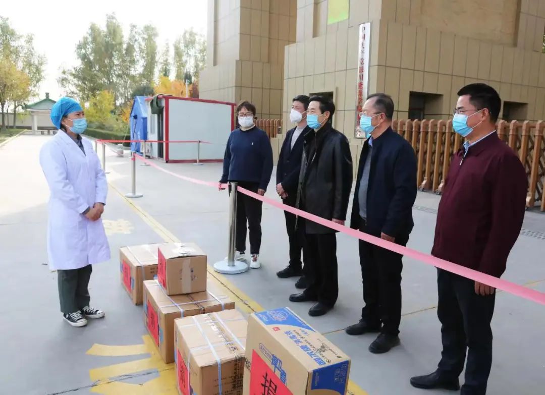 10月27日,银川市九三学社永宁支社副主委、宁夏益美康医疗器械有限公司总经理杜小梅女士一行4人为银川能源学院捐赠一批防疫物资。自治区教育厅疫情防控领导小组驻校联络员贾世杰,学校党政领导郭书印、吴玉聪、孟兆怀、马玉明、刘兆侠和党政办公室主要负责人赵桂生以及九三学社社员、学校化学与生物工程学院教师刘晓瑞等参加捐赠活动。