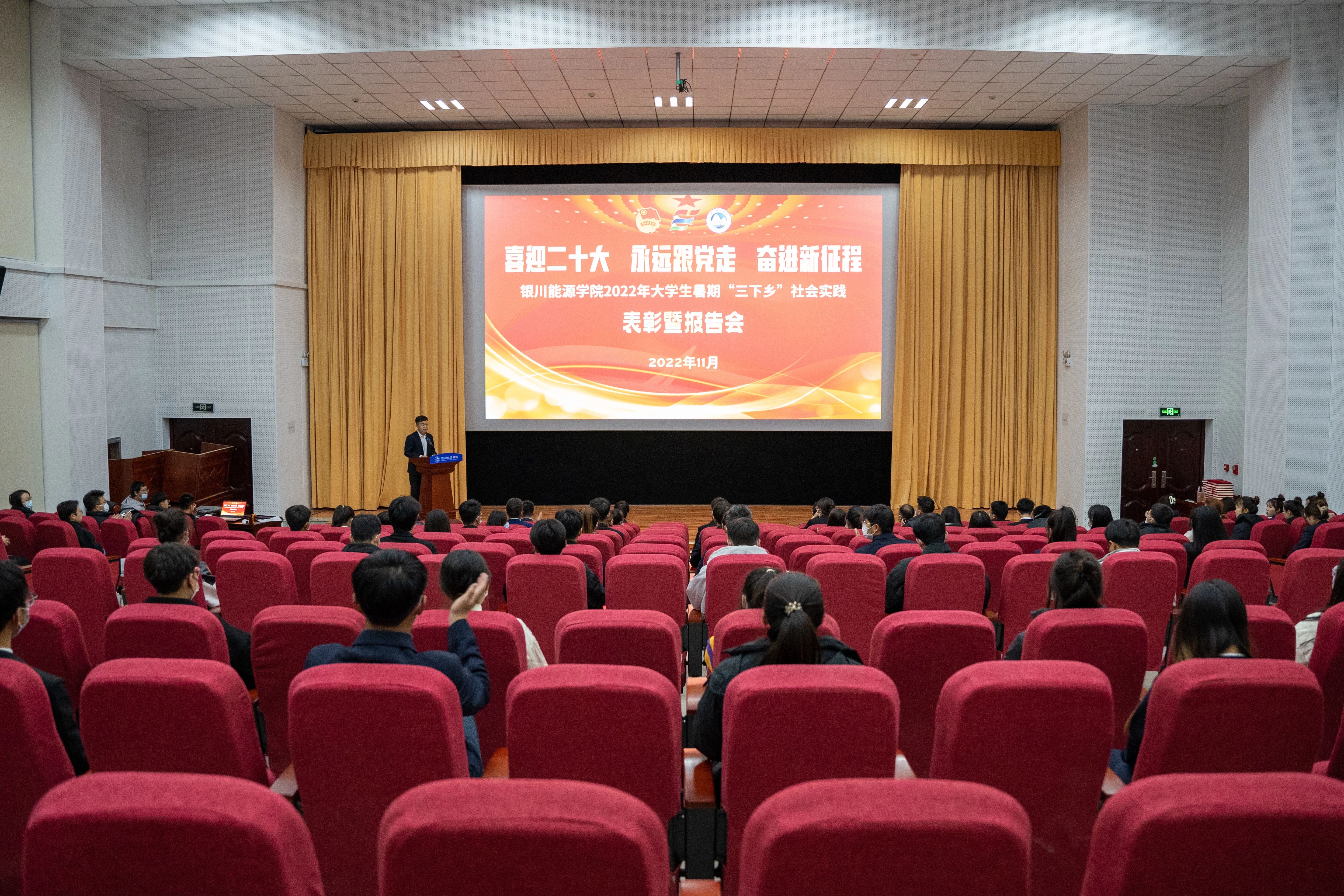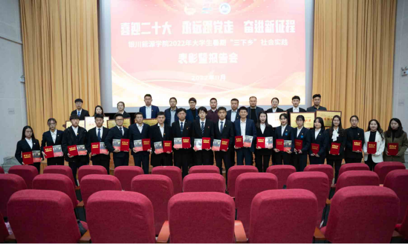 11月22日下午,银川能源学院2022年暑期"三下乡"社会实践活动总结表彰会在明德影院举行。校理事会理事长吴玉聪、校长助理刘兆侠出席活动,教务处主要负责人黑宝骊、校团委主要负责人孙瑞、学生处相关负责人张九经,各二级学院团学组织负责人以及获奖集体和个人代表参加会议,会议由张新池主持。