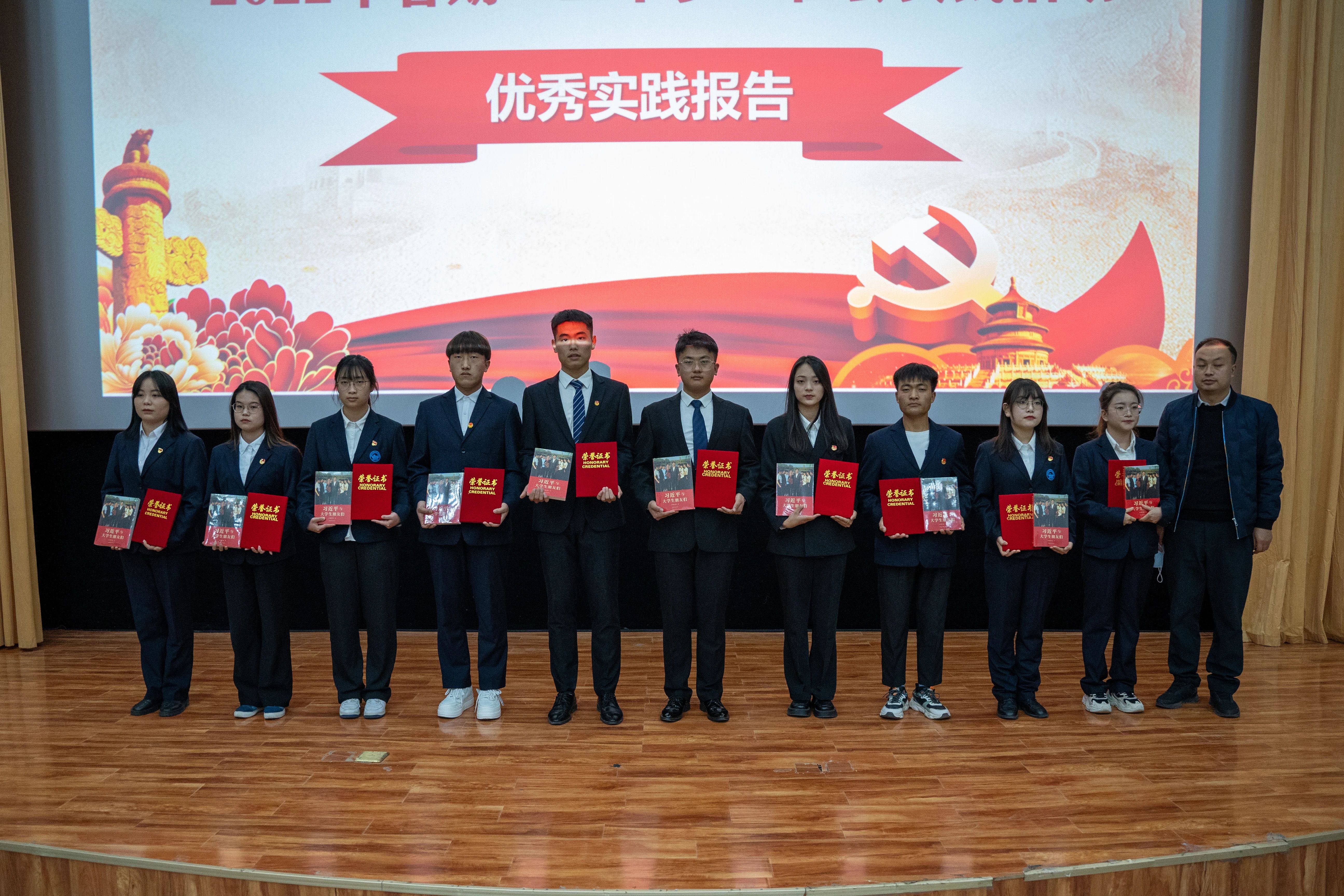 学生处相关负责人张九经为优秀社会实践报告获奖代表颁奖