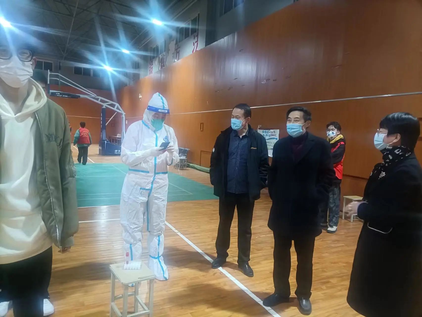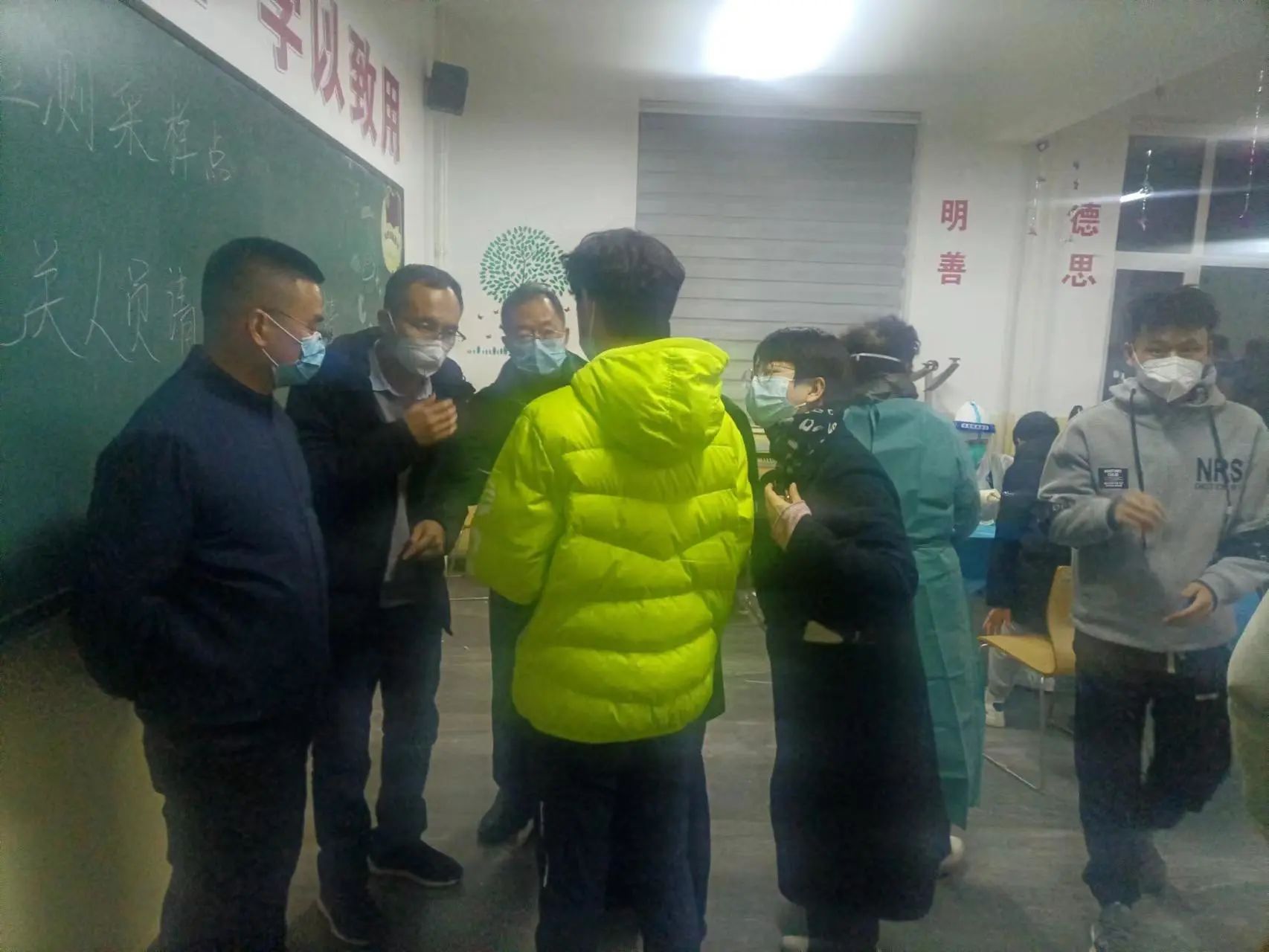 近日,在银川市高质量核酸筛查期间,学校党委书记郭书印、理事长吴玉聪、执行校长孟兆怀带领党政领导班子成员坚持深入一线关心师生安全,慰问志愿者及现场工作人员,详细了解师生核酸检测实况。