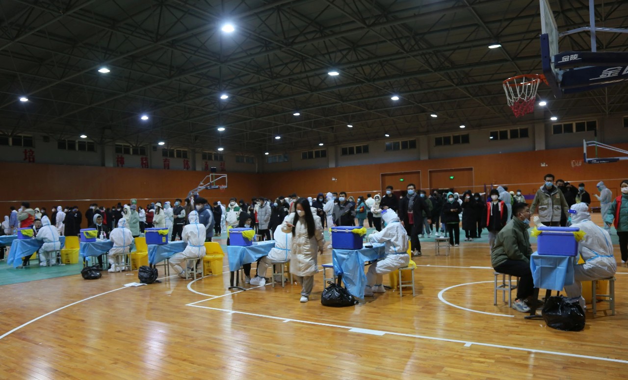 学校安排40多组由教工志愿者组成的核酸筛查采样队伍,分散到校园4、5号教学楼、大学生服务中心、体育运动馆、美食广场等地,进行秩序维护和核酸筛查采样。全体师生积极响应,自发配合行动,展现了银能师生良好的精神风貌。志愿者们不辞辛苦,任劳任怨,冒着寒冬,牺牲休息时间,在寒风中维持秩序,不断忍受着消毒液和酒精的冰凉刺骨,齐心协力,高效率高质量完成每日核酸筛查采样。这支队伍里有老教师、青年教师和辅导员。另外,还有一支青年大学生志愿者做引导等服务,他们表示:"希望能尽自己一份力,为学校抗疫工作做应有贡献。"