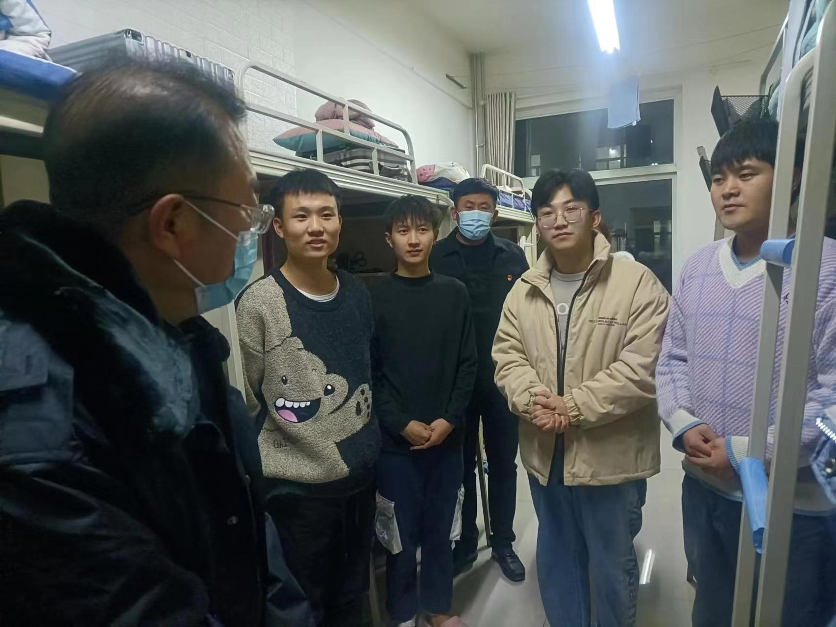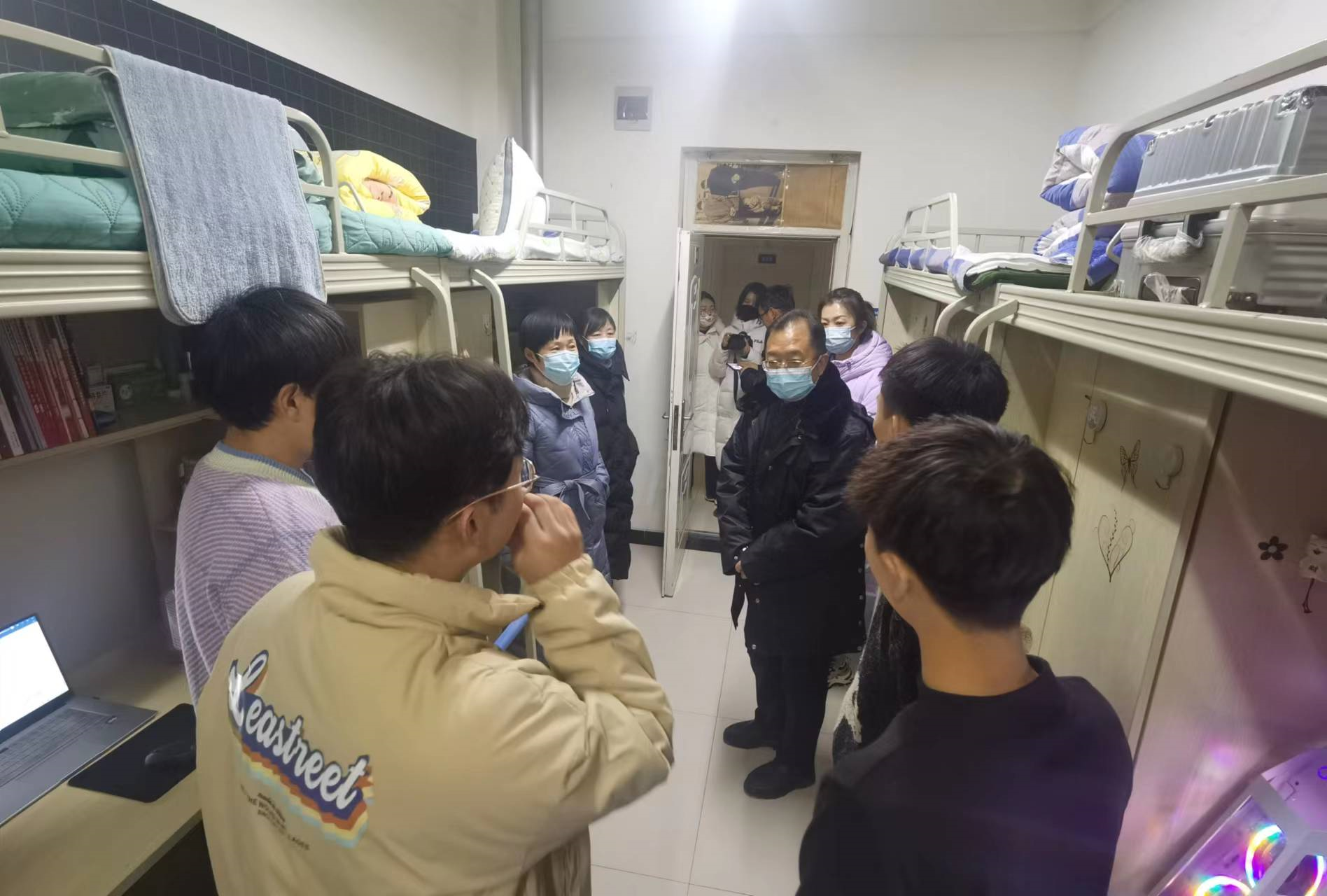 11月30日,校党委书记郭书印深入外国语学院学生宿舍看望慰问学生,学院领导及学工队伍一起陪同,开展关心关爱活动,落实"quot;七进一交友"quot;之"进宿舍"工作。走访期间,郭书印询问了学生最近的身体状态,与学生进行亲切交谈,结合当前疫情形势,叮嘱学生要遵守学校疫情防控规定,做好个人防护。他询问同学们的学习情况,当听到大家有的在复习考研,有的在抓紧完成功课,有的比较关注就业,便勉励大家要珍惜大学时光,刻苦学习知识技能,练就本领,坚持终有收获。
