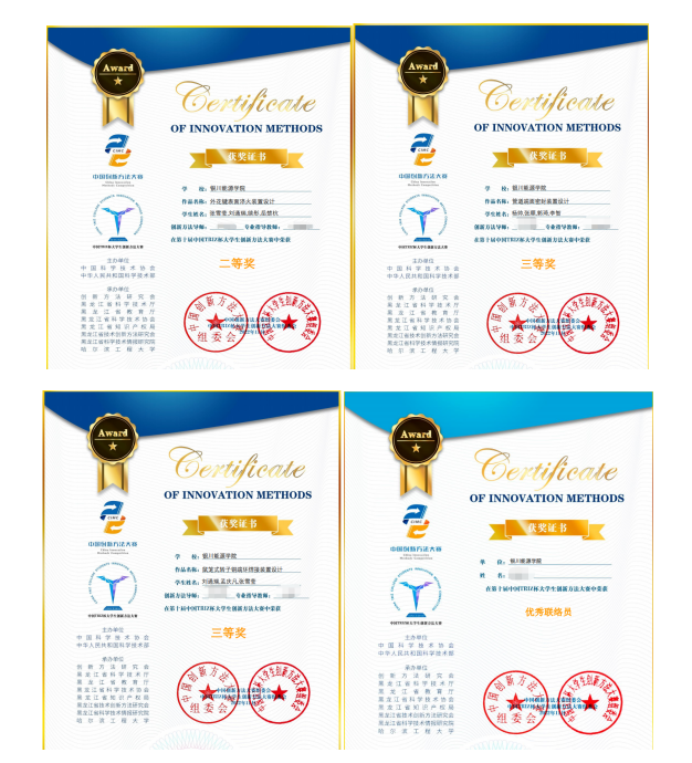近日,由中国科学技术协会、中华人民共和国科学技术部联合主办,创新方法研究会、黑龙江省科学技术厅、黑龙江省教育厅、黑龙江省科学技术协会、黑龙江省知识产权局、黑龙江省技术创新方法研究会、黑龙江省科学技术情报研究院、哈尔滨工程大学联合承办的"第十届中国TRIZ杯大学生创新方法大赛"总决赛在哈尔滨工程大学顺利完成,学校机械与汽车工程学院组建了三支代表队代表学校参加了比赛。最终,我校被中国科学技术协会、中华人民共和国科学技术部授予优秀组织单位,代表队获得团体二等奖1个,团体三等奖2个的好成绩。