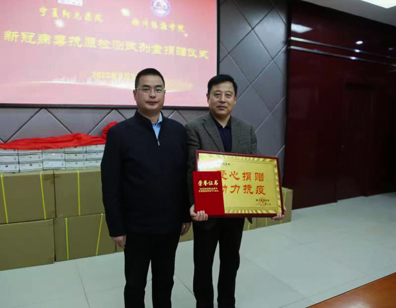 宁夏阳光医院党委副书记宁忠炎表示,目前正值银川市各大高校集中开学,本着"阳光与您同行"的初心,开展本次关爱高校青年成长行动,为银川能源学院这所高等学府捐赠抗原试剂盒,希望能够助力人才培养,未来为社会输送更多有爱心和社会责任感的优秀青年人才。