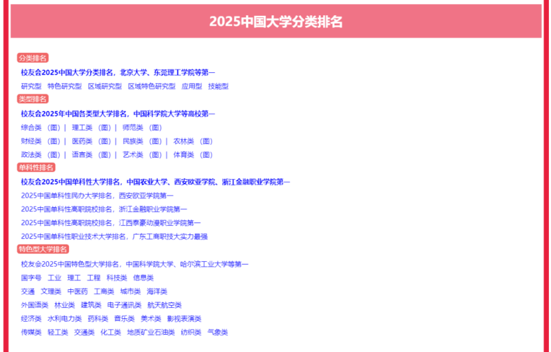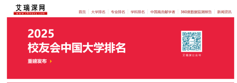 校友会中国大学排名首发于2003年,以“校友、质量、影响与贡献”为主题特色连续23年发布中国大学排名,已成为具有广泛社会影响力、公信力、参考价值和创新力的中国大学排名领先品牌。 校友会中国大学排名评价指标体系由办学层次、思政教育、教学质量、杰出校友、高层次人才、学科专业、科研项目、科研基地、科研成果、社会服务、社会声誉和国际影响力等12个一级指标构成,以艾瑞深“大学360度全景数据平台”为数据支持。 校友会中国大学排名是国内目前评价体系最为系统全面、客观独立,评价体系与评价方法最为稳定,评价指标和参评高校数量最多,最符合国家政策与价值导向的中国大学排名。
