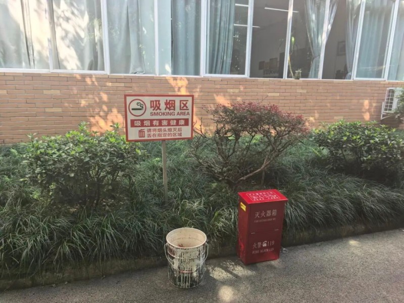 为尊重吸烟者权益,学校设置了指定吸烟区↓