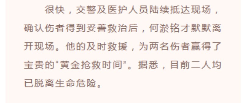 一句朴实无华的话语,道出了一名退伍军人、一位文传毕业生的赤子之心。从文传校园的求知者到边防哨所的守护者,再到市井街头的救援者,改变的是身份与岗位,不变的是“责任至上、勇于担当”的初心。何淤铭用挺身而出的壮举,完美诠释了“退伍不褪色”的军人本色,更彰显了文传学子厚重的家国情怀与坚定的责任担当,为全校师生树立了最好的榜样。