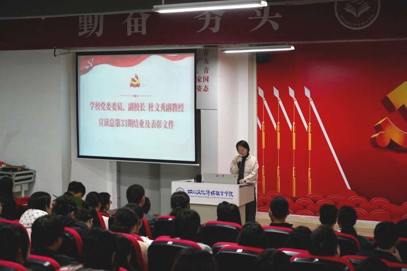 副校长、党委委员杜文秀宣读总第33期党校结业及优秀学员表彰文件