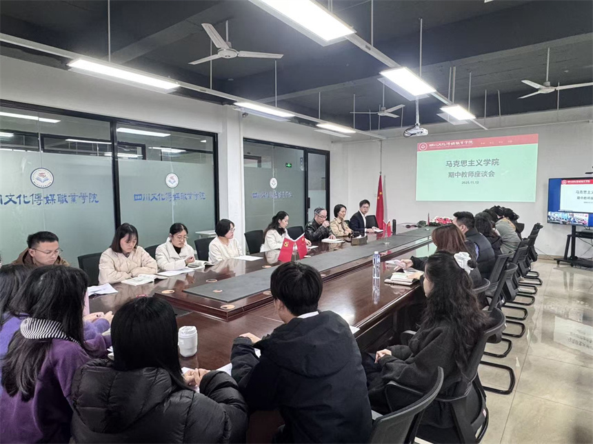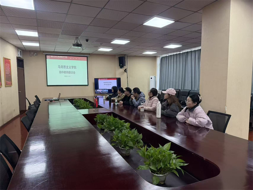 2025年11月12日16:00,马克思主义学院在两校区会议室同步召开2025-2026学年第一学期期中教师座谈会。校党委书记周世伟、副校长杜文秀莅临指导,学院专业建设指导主任杨斌主持,直属党支部书记龚成娇及全体专职教师参会。