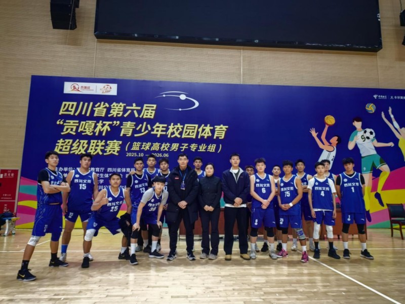 号角吹响,战意沸腾!近日,四川省第六届 “贡嘎杯” 青少年校园体育超级联赛(篮球高校男子专业组)小组赛圆满落幕。四川文化传媒职业学院男子篮球队,以昂扬的斗志和出色的发挥,在领队李萍、教练杨昆和伍林的带领下从小组赛成功突围昂首挺进总决赛。