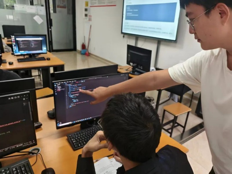 最让学生眼前一亮的,是课堂创新的 “双屏互动 + 实时弹幕” 模式:左屏展示标准代码与教学重点,右屏实时直播学生的实操过程,遇到共性问题时,朱老师会暂停讲解,针对性地分析代码漏洞;学生们还能通过弹幕分享解题思路,“这里可以用防抖优化!”“我之前踩过这个坑,要注意数据类型!”—— 弹幕区的热烈讨论,让原本单向的教学变成了双向的思维碰撞,后排学生甚至忍不住起身凑近屏幕,生怕错过精彩细节。
