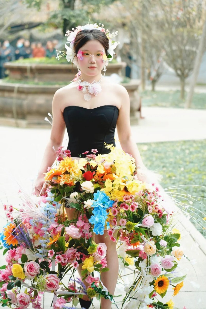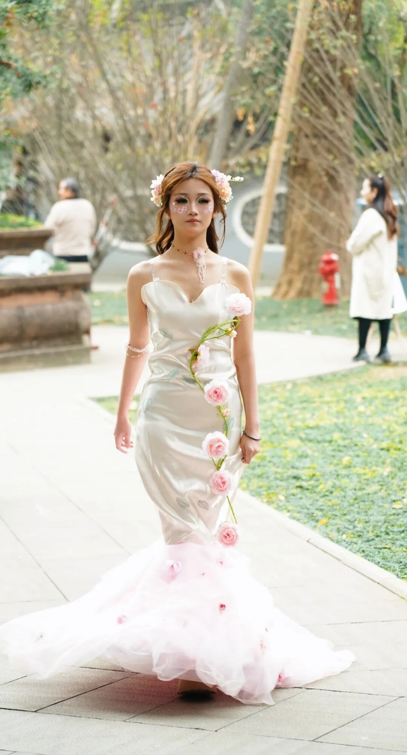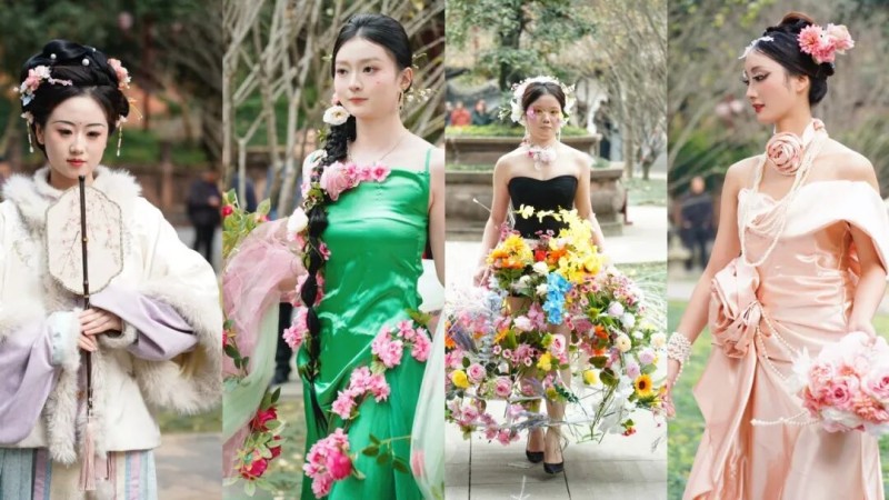 这场走秀的核心,是毕业生们对蜀地文化的多元解读与创意表达。作品融入“时尚牛仔”“花卉”“古装”等多元设计理念,演绎出别样的蜀地风情。