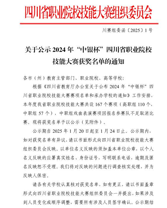 2024年“中银杯”四川省职业院校技能大赛获奖名单