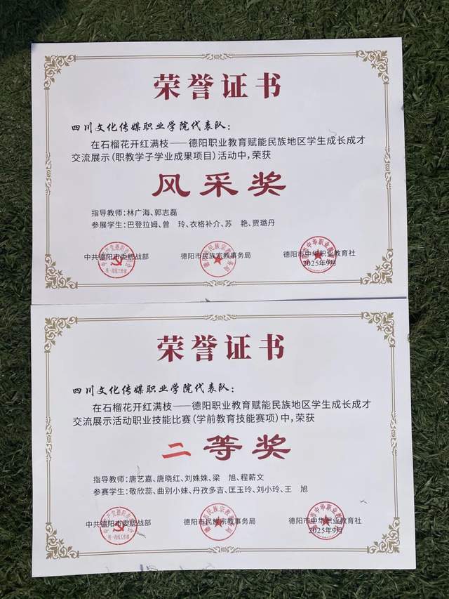 在中共德阳市委统战部、德阳市民族宗教事务局、德阳市中华职业教育社联合主办的 “石榴花开红满枝—德阳职业教育赋能民族地区学生成长成才交流展示活动”中,我校成功斩获二等奖及风采奖。