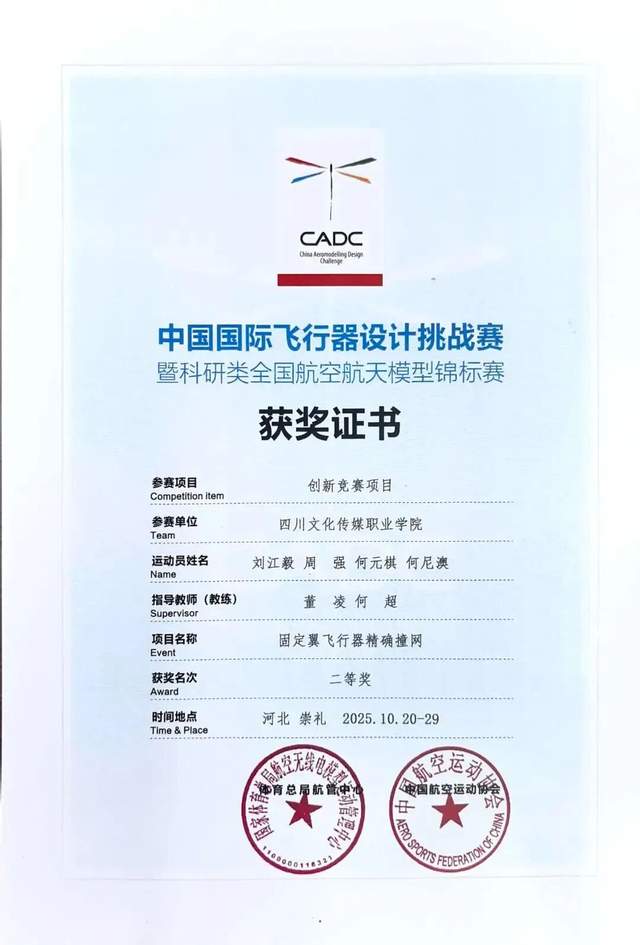 本次赛事由国家体育总局航空无线电模型运动管理中心、中国学生体育联合会、中国航空运动协会主办,作为与美国国际航空设计大赛、欧洲大学生模型载重挑战赛齐名的世界三大顶级赛事,大赛吸引了全国86所高校的1600余名师生同台竞技,我校荣获二等奖2项、三等奖5项。