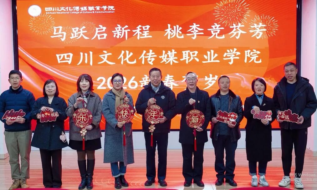 新年的曙光即将照亮前行的道路,温暖与希望相伴,奋斗与梦想同行。让我们携手并肩,同心同德,以更饱满的热情、更昂扬的斗志,共赴2026的美好之约,共筑四川文化传媒职业学院更加灿烂的明天!