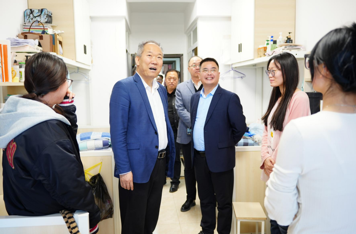 座谈会后,陈东一行实地考察了校园环境,参观了学校实验实训室、图书馆、国际教育学院等场所,还深入学生公寓看望了学生。