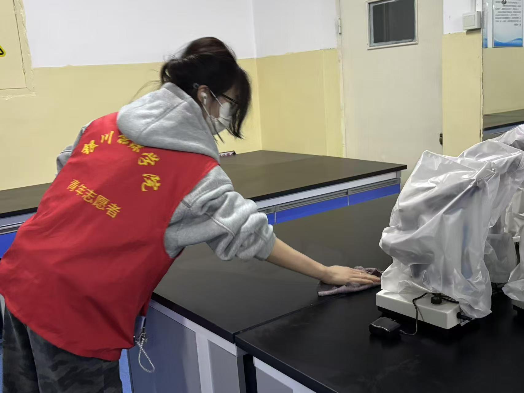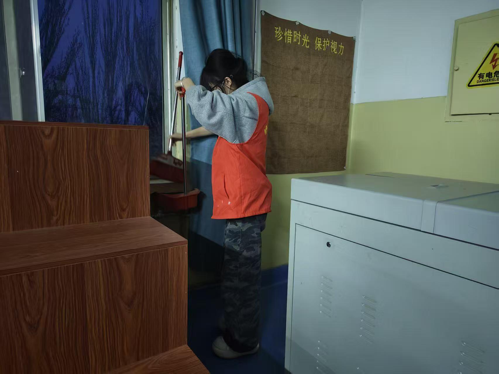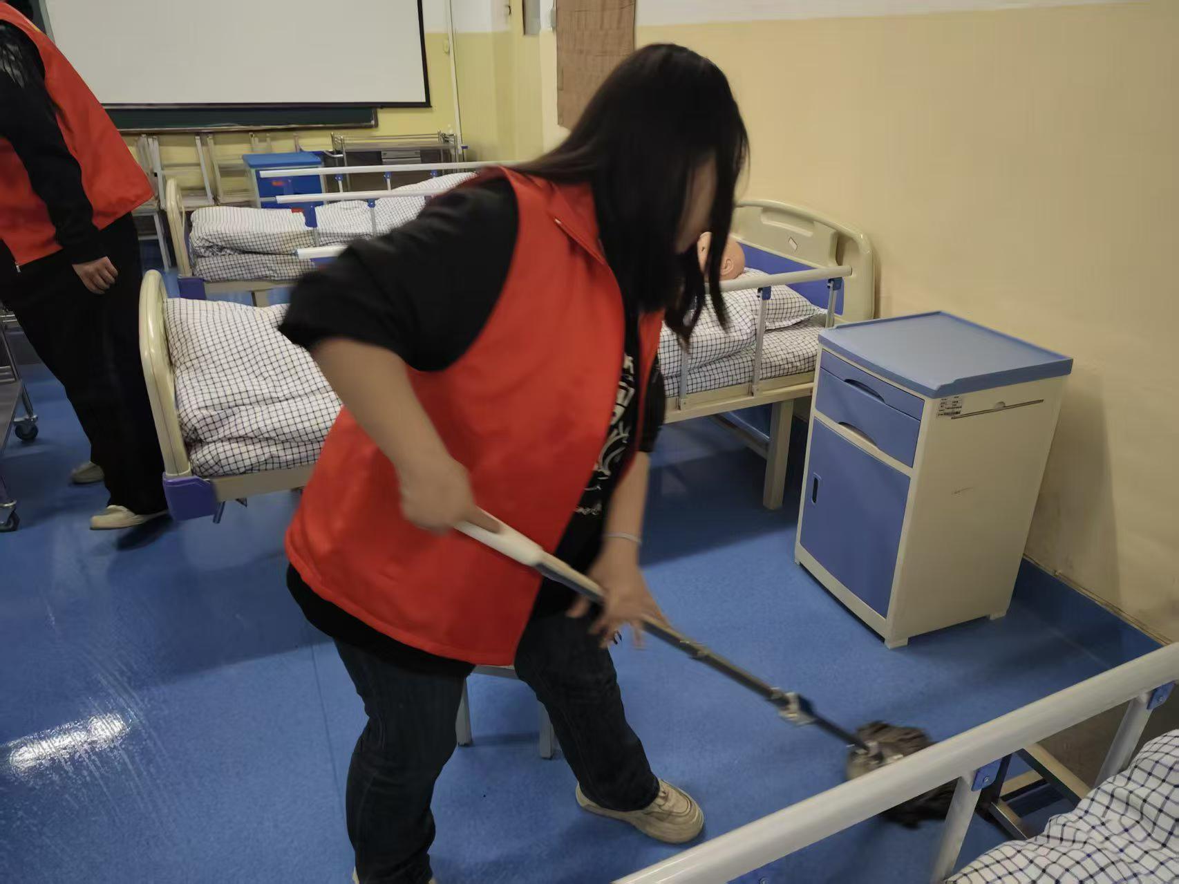 活动中,志愿者们准时集合,明确分工后迅速投入到清洁工作中。大家手持抹布、扫帚、垃圾桶等工具,对教学楼内各教室进行全面细致的清扫:认真擦拭黑板、清理讲台杂物,仔细擦拭每一张桌椅,细致清扫地面垃圾,及时清空垃圾桶,不放过任何卫生死角。同时,志愿者们还对教学楼公共区域的物品进行规整摆放,确保公共区域环境整洁有序。