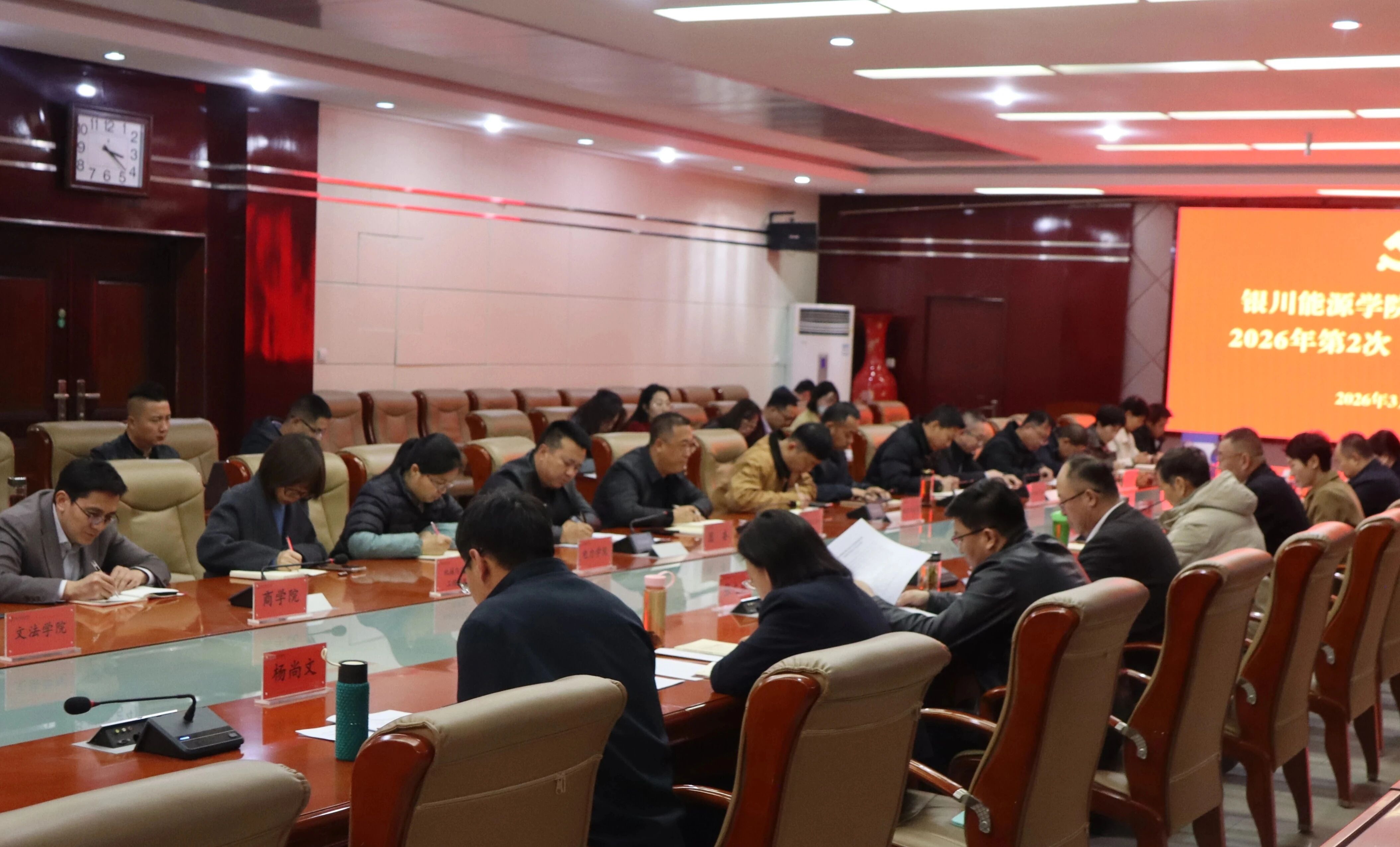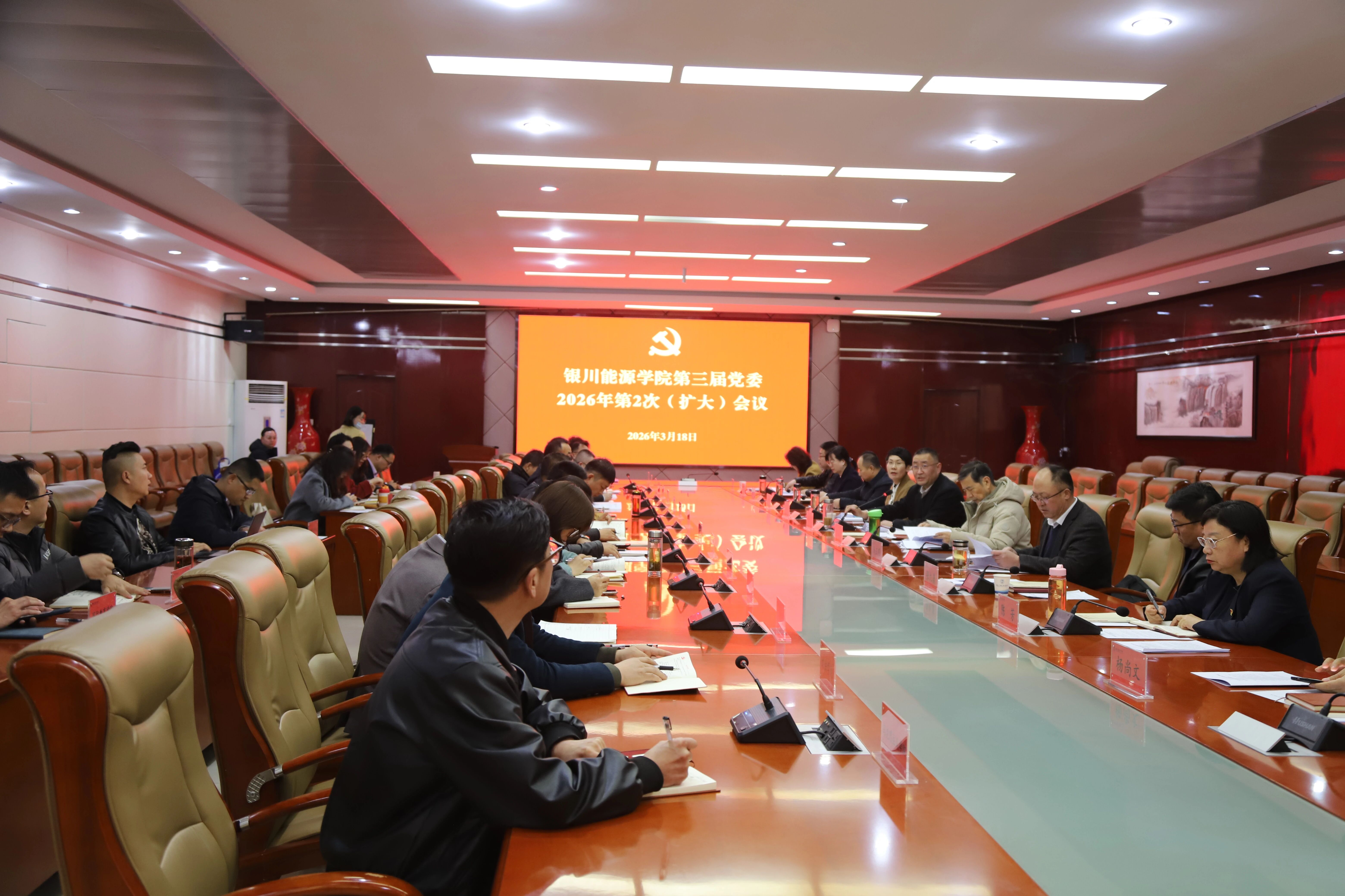 3月18日,银川能源学院召开党委(扩大)会议,传达学习习近平总书记在全国两会上的重要讲话精神和全国两会精神、全区传达贯彻全国两会精神会议精神,部署贯彻落实工作。校党委书记张学举主持会议并讲话。党委副书记、执行校长谷朝众和党委领导班子成员参加会议。