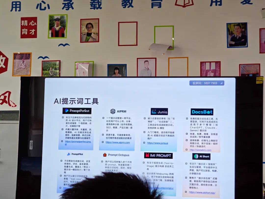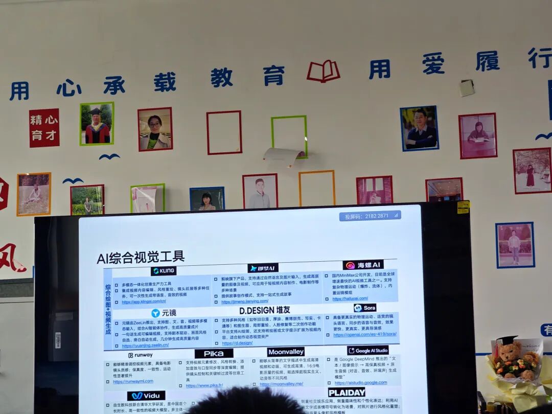 随后,马博主任利用PPT首先介绍了国内外主流通用语言模型,AI提示词工具,AI绘图工具和AI综合视觉工具;接着介绍了目前比较主流的AI变美工具,AI编辑工具,AI搜索工具,AI科技工具;最后围绕任课教师感兴趣的AI PPT生成工具进行了重点介绍了,让教研室各位任课教师对AI工具在课件制作方面有了新的认识和理解。