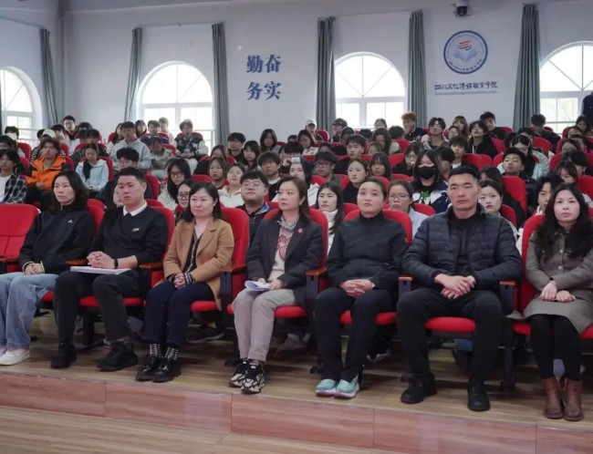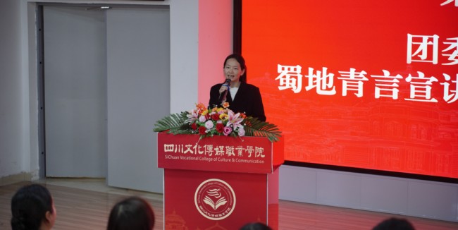 大会上,蜀地青言宣讲团正式宣布成立。宣讲团指导老师谢雨桐介绍了宣讲团组建的背景与初衷。她表示,宣讲团的成立源于一群青年学子对家乡的热爱、对时代的思考、对真理的追寻。宣讲团将以“青言”为桥梁、以“蜀地”为根基,尝试打破传统宣讲模式,通过情景剧、短视频等贴近青年的方式,让理论在互动中深入人心,让思想在交流中碰撞共鸣。这一创新举措标志着学校志愿服务工作从“行动参与”向“思想引领”迈出了坚实一步。