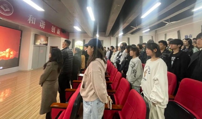 大会在雄壮的《中华人民共和国国歌》声中拉开帷幕。全体起立高唱国歌,激昂的旋律在报告厅内回荡,为整场大会奠定了庄严而奋进的基调。