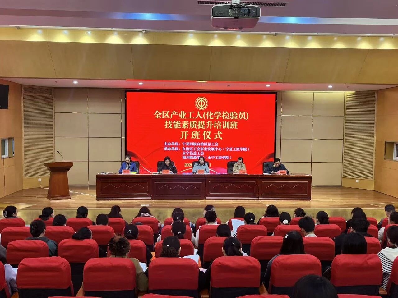 3月25日,由宁夏回族自治区总工会主办,永宁县总工会、自治区工会事业发展中心(宁夏工匠学院)、银川能源学院(永宁工匠学院)共同承办的全区产业工人化学检验员(高级)培训班,在银川能源学院图书馆报告厅举行开班仪式。自治区总工会副主任海利娟、永宁县总工会副主席沈吉红、主任康利平,银川能源学院副校长陈芳、继续教育学院院长邹洁,以及来自全区相关行业的50名学员共同出席。