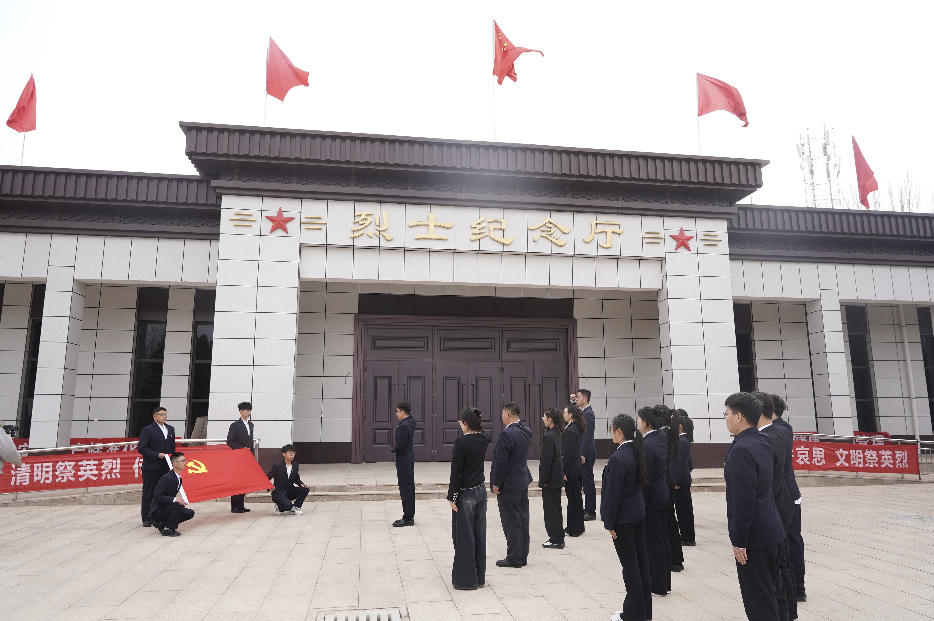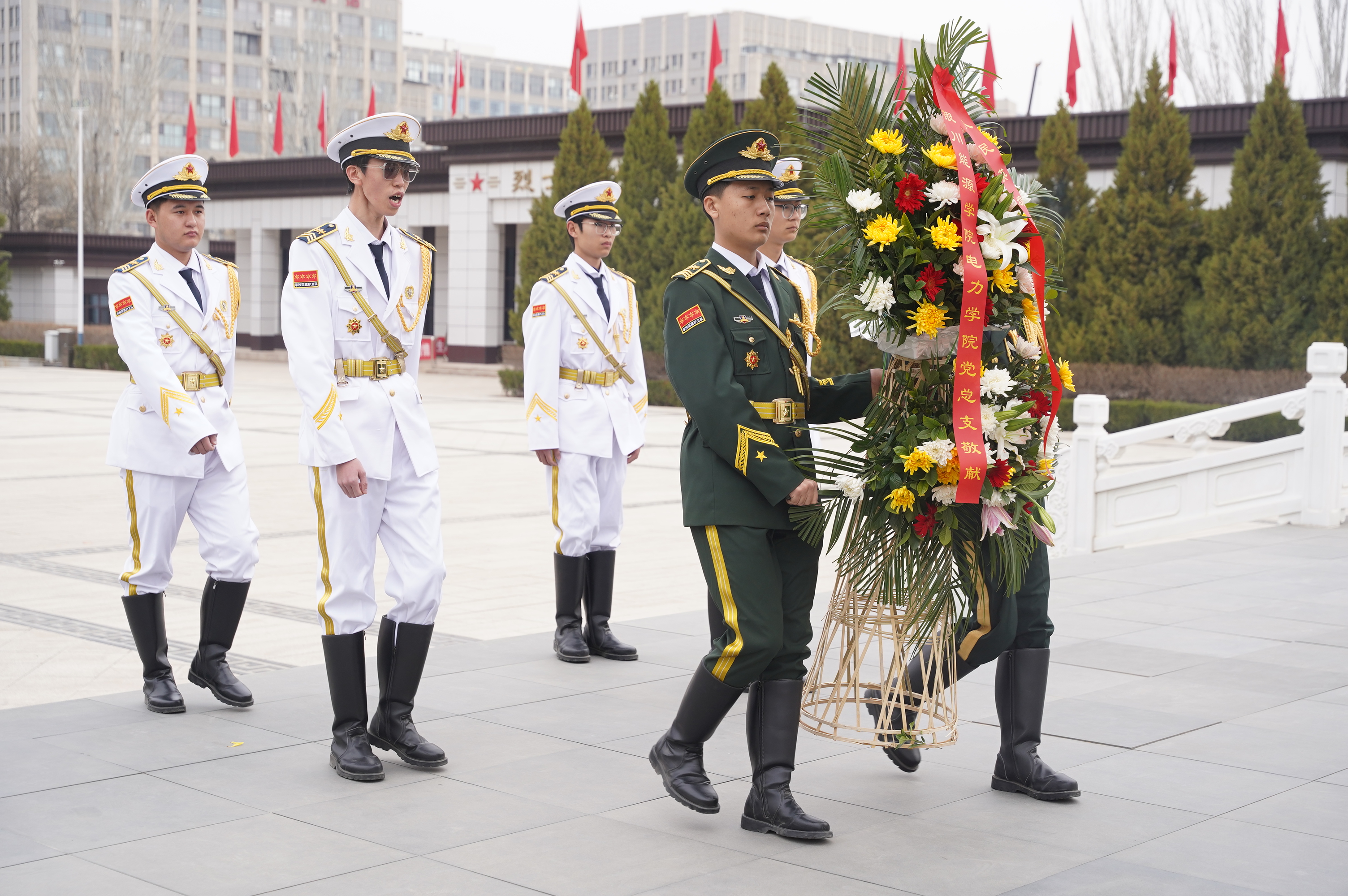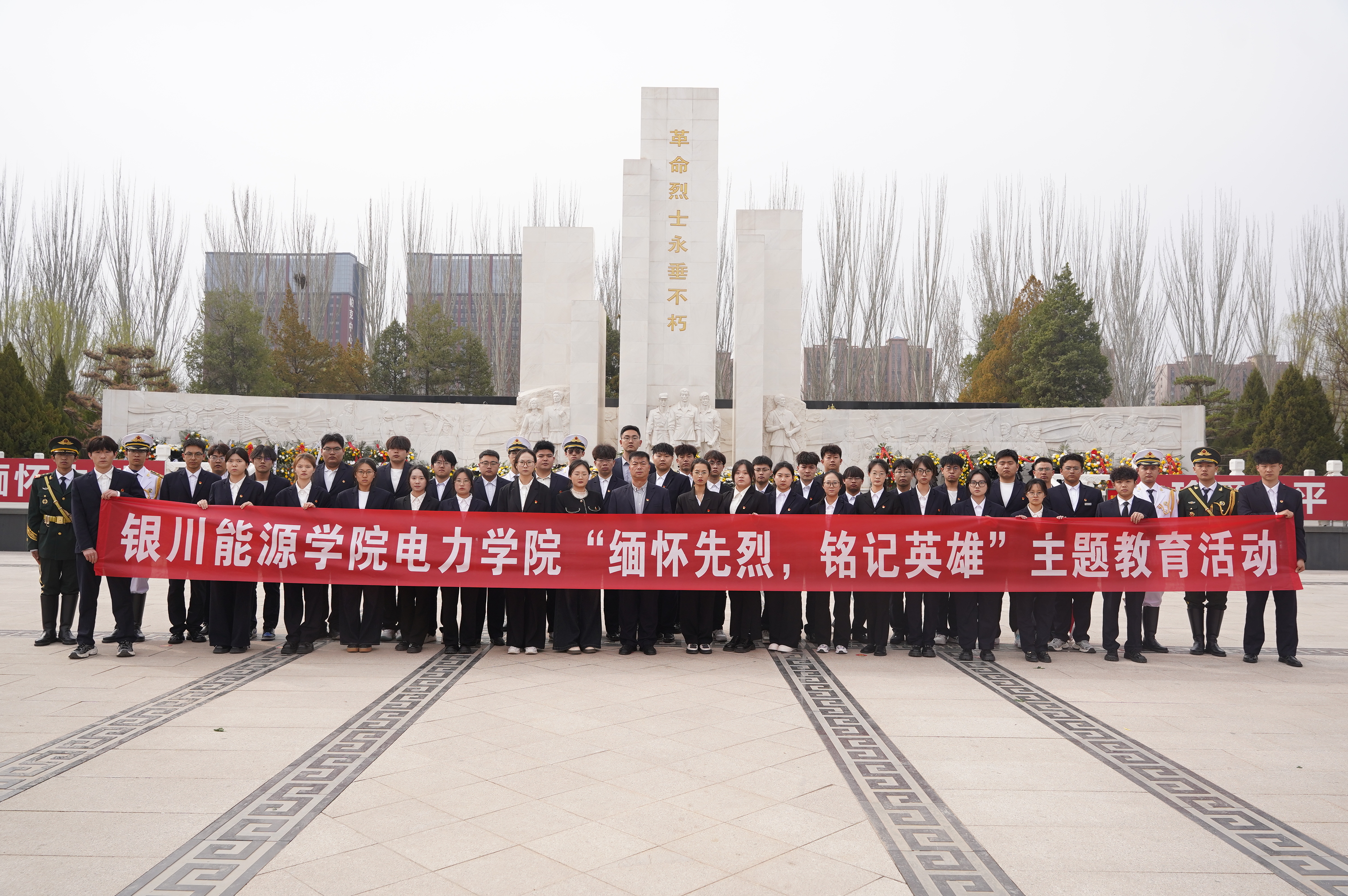 清明祭英烈,丰碑砺初心。为深切缅怀革命先烈的不朽功勋,传承红色基因,厚植家国情怀,引导全院师生坚定理想信念、砥砺初心使命、勇担时代重任,3月30日上午,电力学院赴银川市烈士陵园举行“缅怀先烈,铭记英雄”主题教育活动。学院党总支副书记万辉,学生第一党支部书记路婉仪、学生第二党支部书记马婧,团委书记杨佳娇,学生分会秘书长张智翔及师生党员代表五十余人参加活动。仪式由学院团委书记杨佳娇主持。
