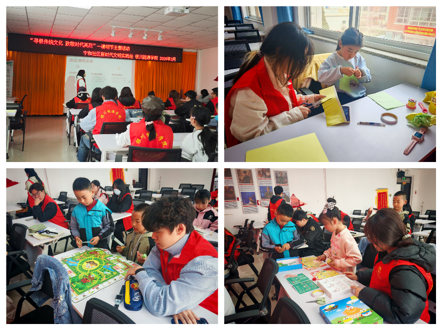 第三组学员在宁和社区开展“寻根传统文化,致敬时代英烈”清明节主题活动,志愿者们通过讲解清明习俗、分享英烈故事,让社区青少年在了解传统节日文化的同时,深刻感悟革命先辈的奉献精神。在手工环节,大家一起制作纸花,将对英烈的缅怀与敬意融入指尖,用质朴的方式表达追思之情。活动现场,孩子们认真聆听、积极互动,在传统文化与红色精神的交融中,进一步增强了民族自豪感和责任感,让清明时节更具温度与力量。