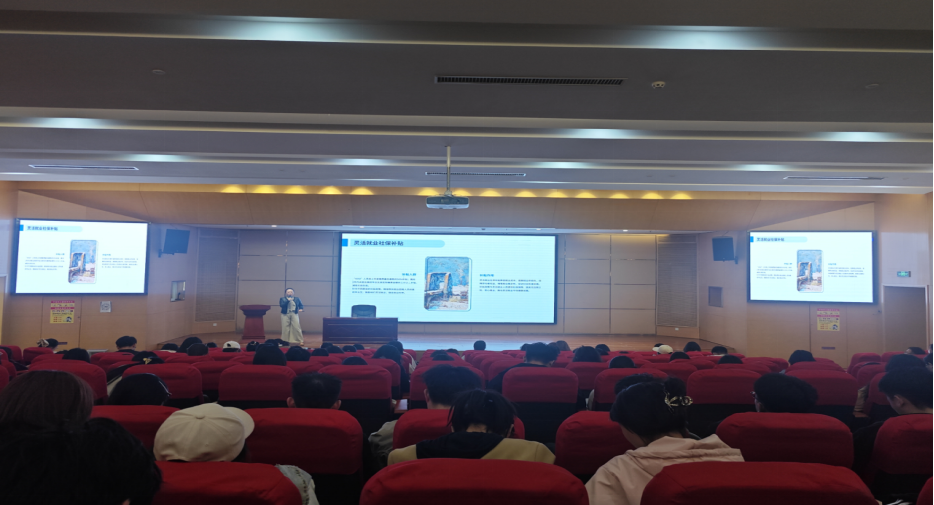 金凤区就业创业和人才服务中心人才科主任王慧对就业政策进行了解读。她紧扣2026年宁夏及银川市最新的就业创业形势,对基层就业补偿代偿、青年就业见习补贴、人才公寓申请、创业担保贷款及税收优惠等一系列扶持政策进行了解读。她结合具体案例,将晦涩的文件语言转化为通俗易懂的实操指南,重点说明了各项政策的申请条件、办理流程及注意事项,引导学生们树立“政策也是资源”的意识,学会借力政策规划职业生涯。