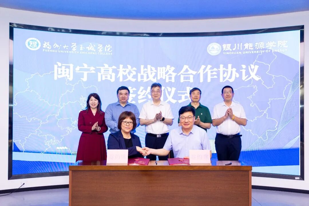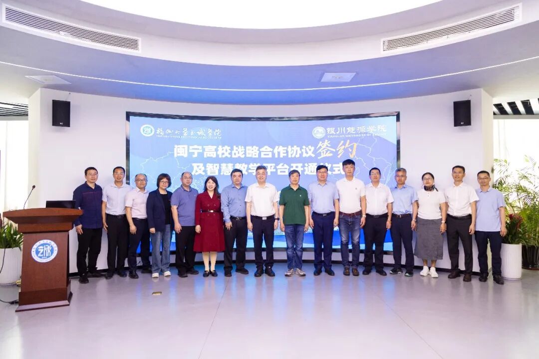 4月22日至23日,银川能源学院与福州大学至诚学院在福州隆重举行“闽宁高校战略合作协议签约暨闽宁高校智慧教学平台开通仪式”。福建省教育厅信息中心主任张杰,福州大学至诚学院院长侯琳熙、副院长张栋、李玲及院长助理徐艺文、邵艳群,银川能源学院执行校长谷朝众、副校长张九鼎,以及两校相关处室负责人出席活动。签约仪式由福州大学至诚学院党委常务副书记何小红主持。