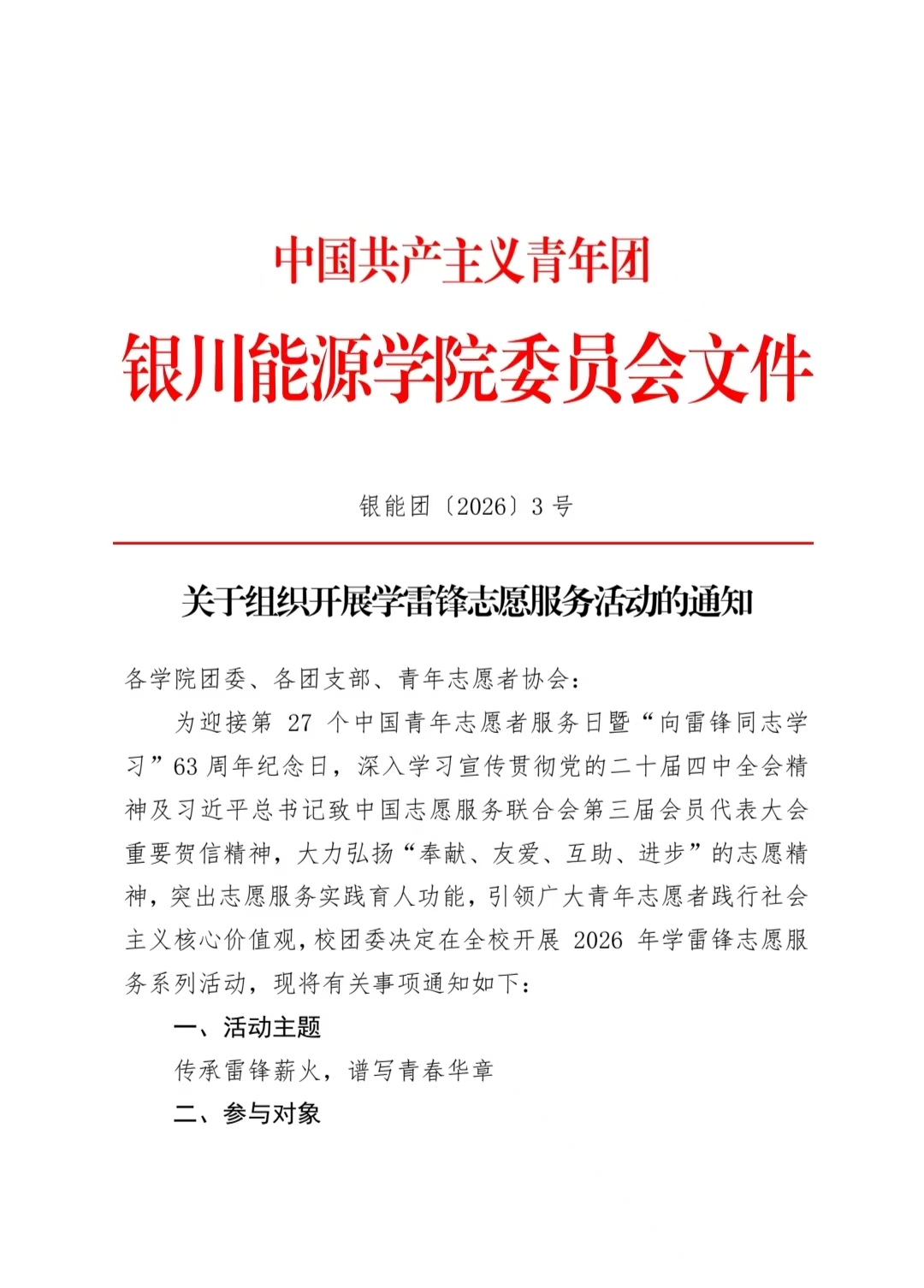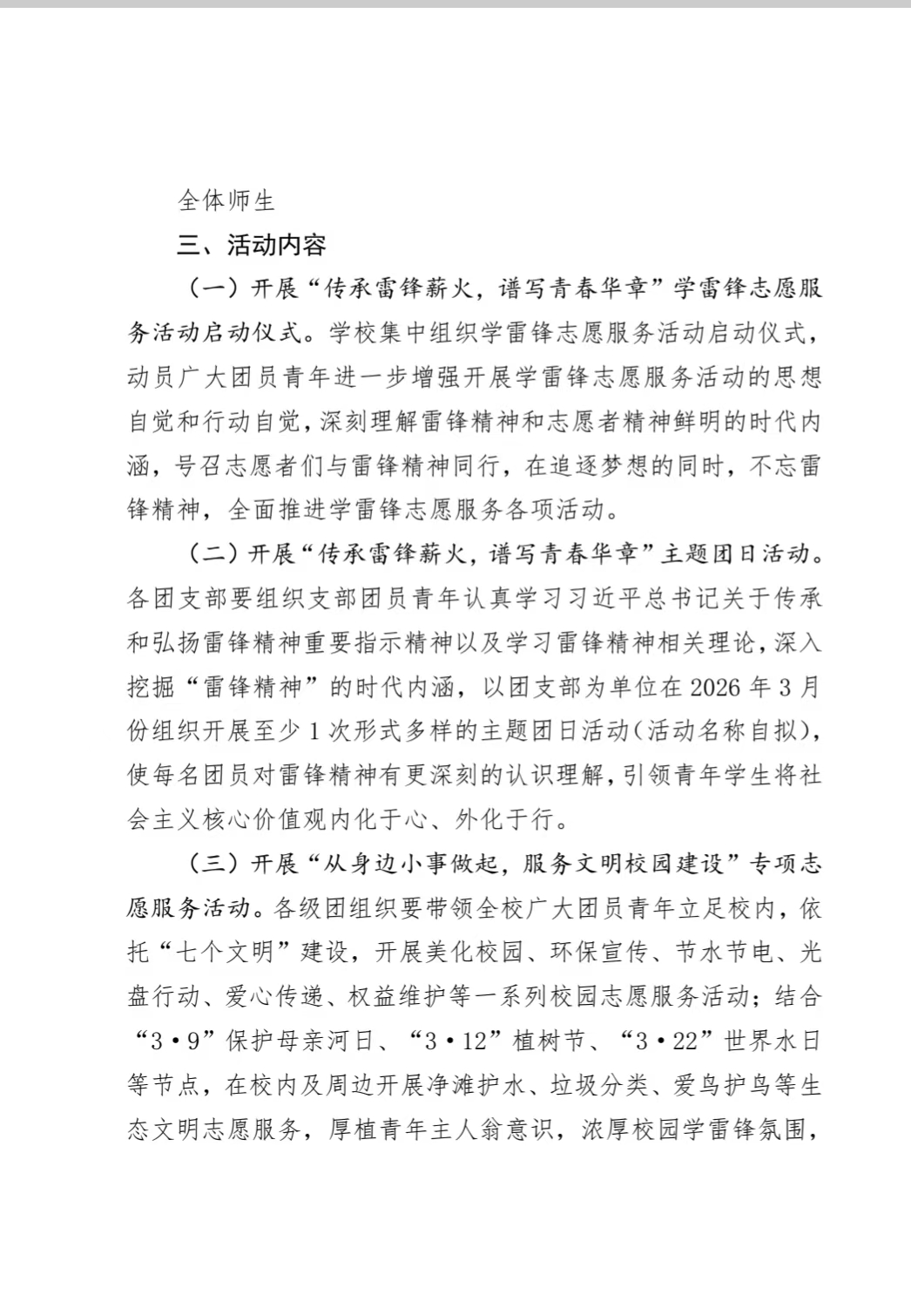 关于组织开展学雷锋志愿服务活动的通知