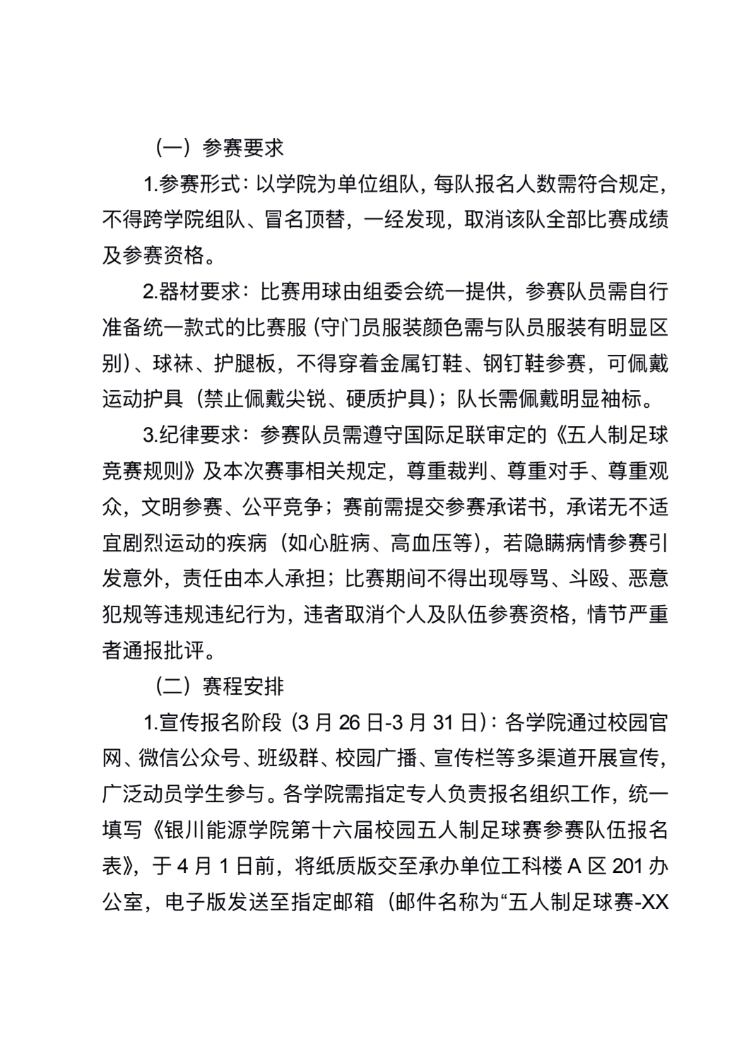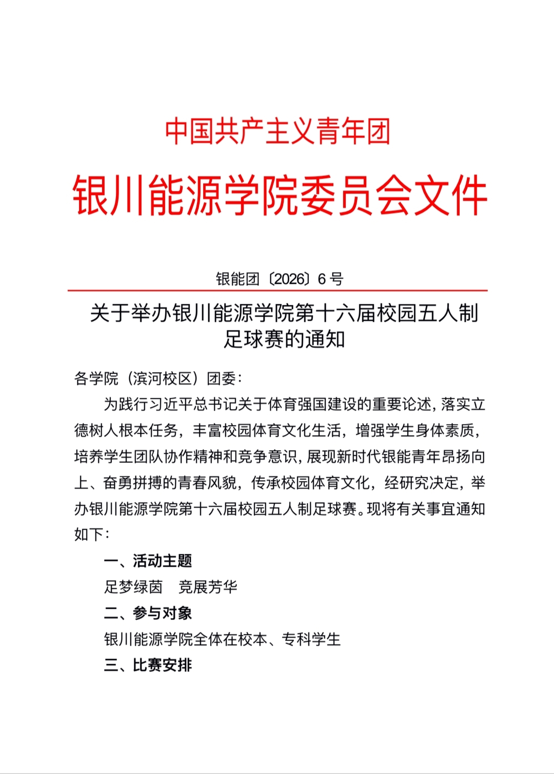 关于举办银川能源学院第十六届校园五人制足球赛的通知