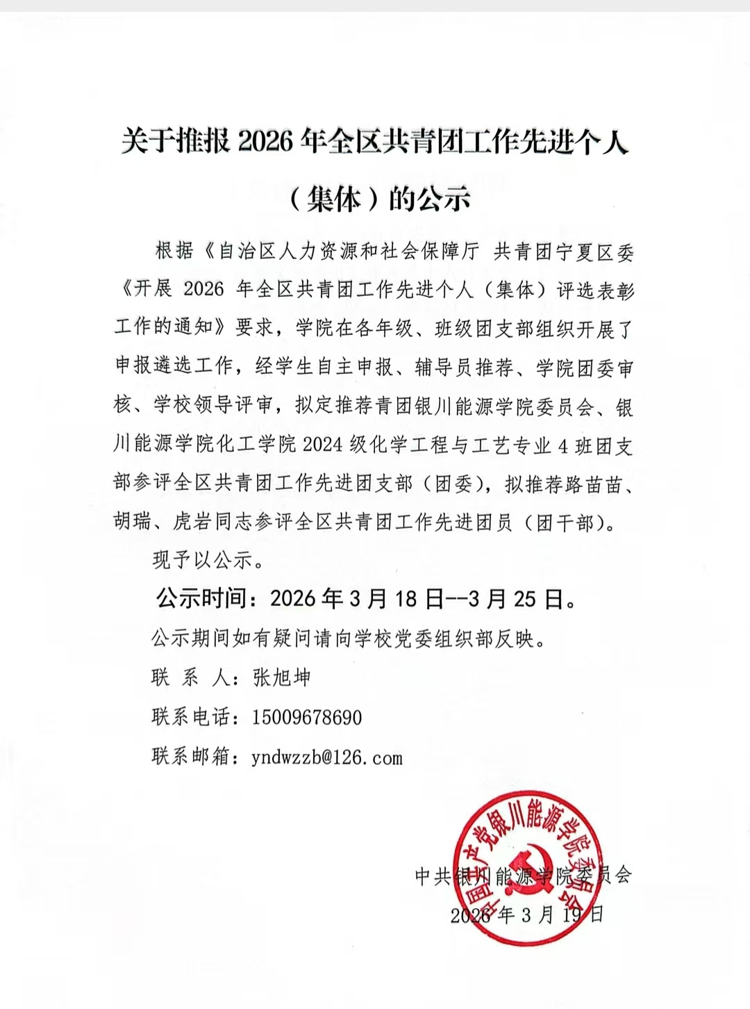 关于推报2026年全区共青团工作先进个人(集体)的公示