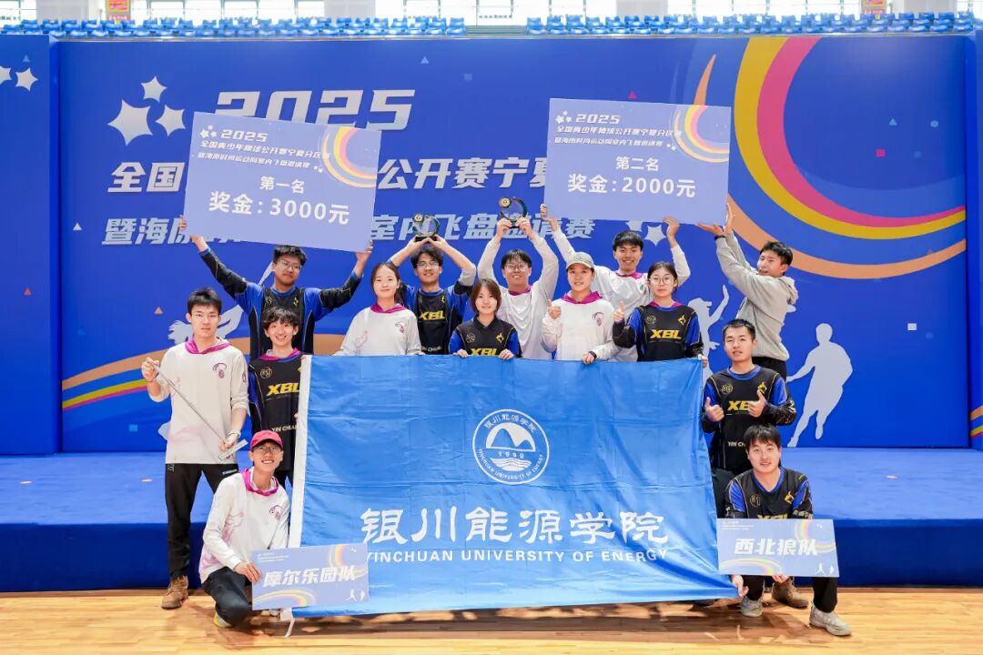 在刚刚落幕的2025年全国青少年棒球公开赛宁夏分赛区暨海原时尚运动周室内飞盘邀请赛,银川能源学院飞盘队的同学们凭借顽强拼搏的斗志与日益精进的技战术水平,从众多队伍中脱颖而出,勇夺冠军、亚军并分别获得3000元和2000元的奖金,创造了我校飞盘协会建队以来的最佳战绩,书写了青春赛场上又一页闪亮篇章。