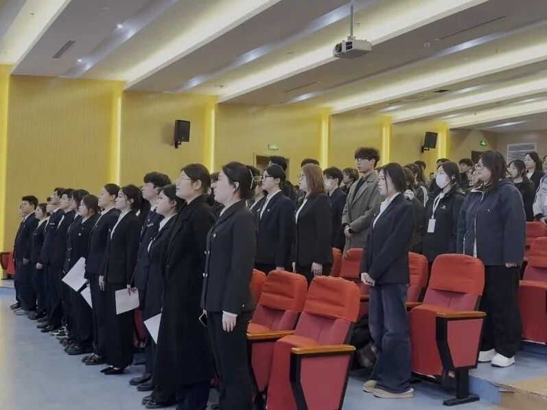 会议在庄严的中华人民共和国国歌声中拉开帷幕,全体参会人员肃立,歌声铿锵有力,传递着商学院团学干部的爱国情怀与使命担当。