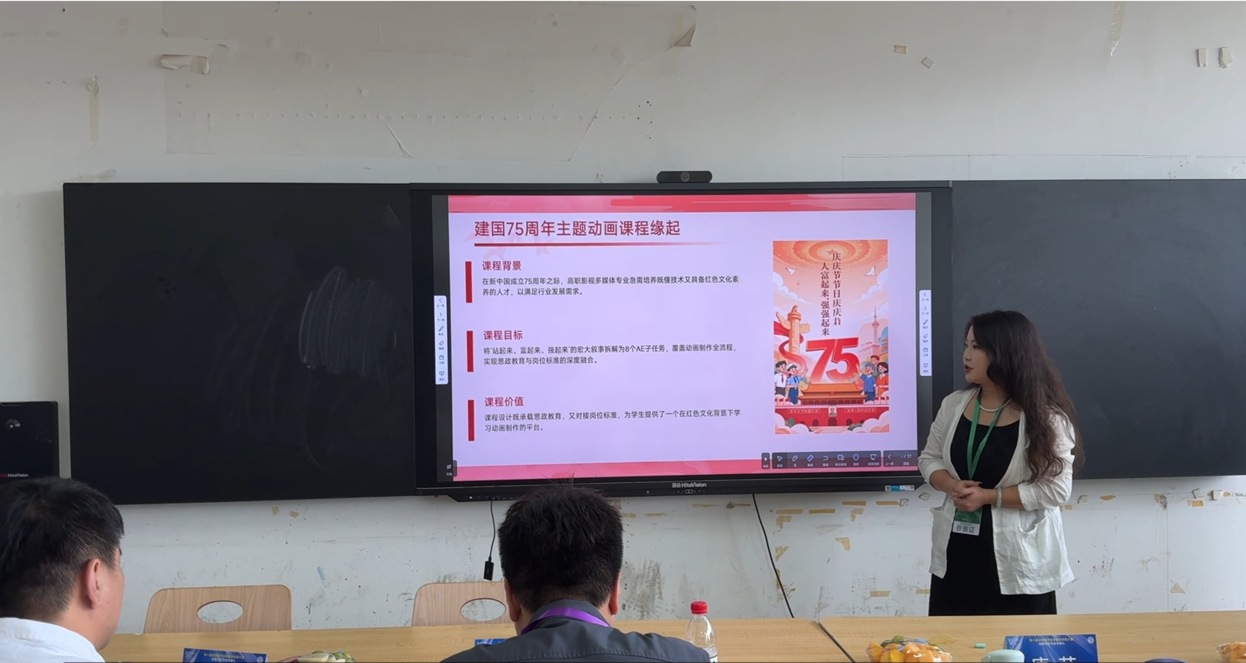 赛中,韩嫣老师团队沉着冷静,在作品展示与答辩环节,清晰且生动地阐述了《建国七十五周年MG动画制作》的创作理念、技术运用以及教学融合思路,面对评委的提问,对答如流,充分展现出扎实的专业功底与良好的团队协作能力。