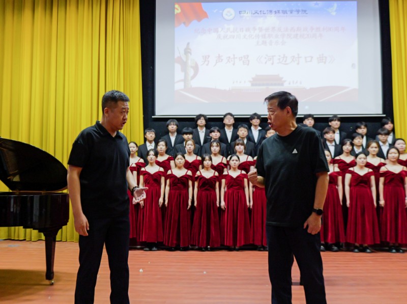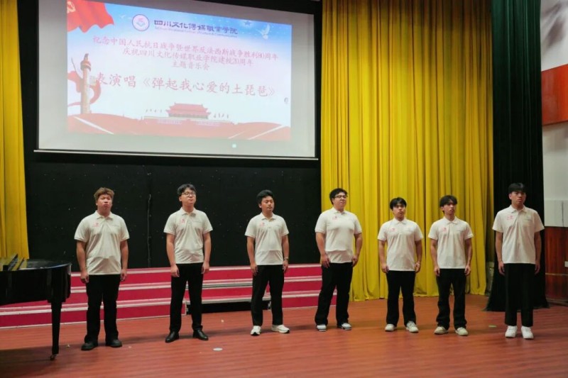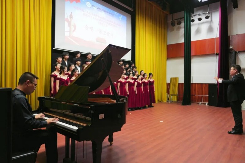 近日,为纪念中国人民抗日战争暨世界反法西斯战争胜利80周年,庆祝新中国成立76周年,同时向学校建校20周年献礼,按学校党委部署安排,由艺术教育系党支部承办、表演艺术系党支部协办的“铭记烽火岁月 奏响时代强音”主题音乐会在崇州校区小剧场成功举行。