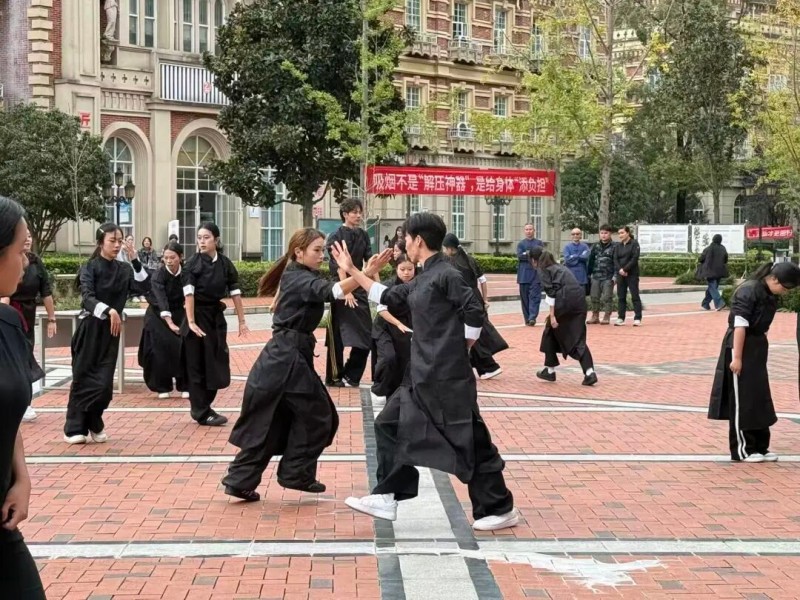 活动伊始,校团委精心编排的《咏春》《盛世敦煌》舞蹈接连登场,瞬间点燃现场氛围。《咏春》舞者身姿灵动,将武术的刚劲与舞蹈的柔美融于一招一式,尽显中式气韵;《盛世敦煌》则以曼妙舞姿,重现敦煌壁画中的千年风华,仿佛将丝路文明画卷徐徐展开。独特的东方美学让白俄罗斯师生频频惊叹,掌声与喝彩声此起彼伏。